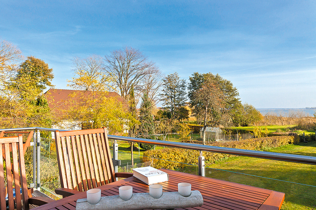 Haus: Neu erbautes, regionstypisches Ferienhaus mit 2 komfortablen Ferienwohnungen mit Kaminofen. Moderne, hochwertige Einrichtung. Fußbodenheizung. Kostenloser Internetzugang (W-Lan). Nichtraucherwohnungen. Balkon mit schönem Boddenblick. Angel-/ Grillmöglichkeit am hauseigenen Bootssteg. Ruderboot vorhanden (Gebühr). Tischtennis-Raum. 1 Pkw-Stellplatz/Fewo.