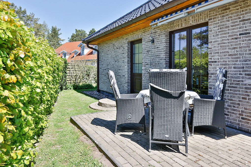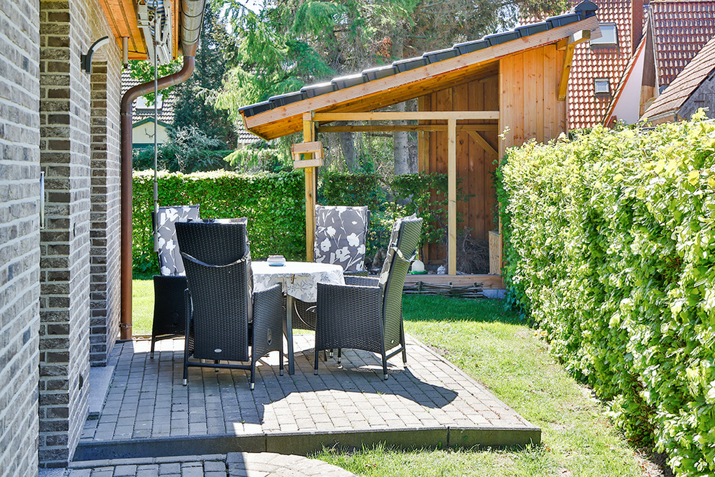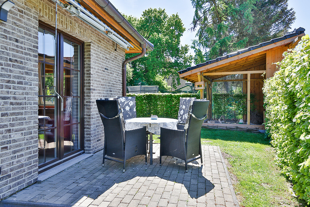 Haus: Modernes Einfamilienhaus im Bungalowstil mit einer schönen Ferienwohnung. Helle, freundliche Einrichtung. Kostenloser Internet-Anschluss über W-Lan. Nichtraucherwohnung. Fußbodenheizung. Terrasse mit Sitzmöbeln. 1 Pkw-Stellplatz am Haus.