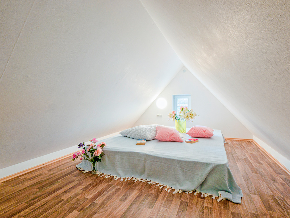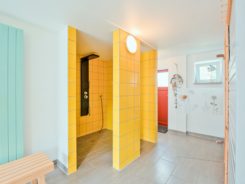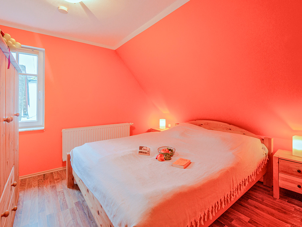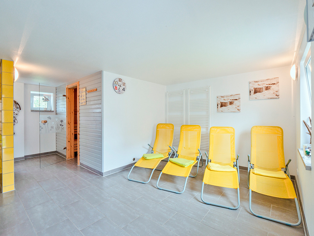 Haus: Schönes, renoviertes Doppelhaus mit Rohrdach und Außensauna. Haushälfte mit moderner, geschmackvoller Möblierung. Zentralheizung. Im Anbau des Hauses: Saunabereich mit Ruheliegen, Dusche, WC zur gemeinschaftlichen Nutzung. Gepflegter Garten mit Rasenfläche, Schaukel, Grill. 2 Pkw-Stellplätze.