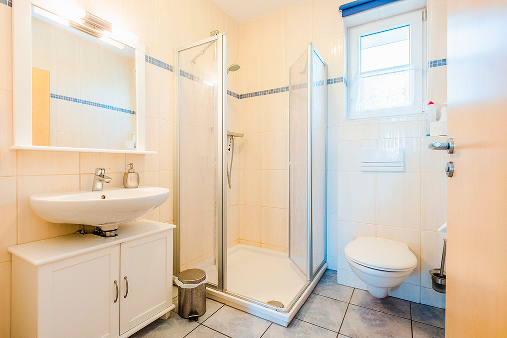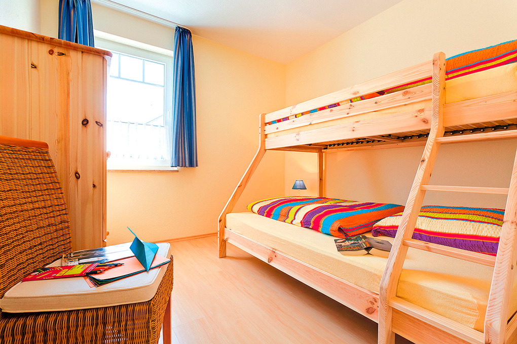 D 65.11 Wohnung 1-5 Pers.: 3-Zimmerwohnung mit 58 qm Wohnfläche, Parterre. Heller, freundlicher Wohn-/Essraum mit Kaminofen, Couchgarnitur (Ausziehcouch 1 Pers.), Flachbild-Sat-TV, Radio/CD, Esstisch, moderner Einbauküche (Backofen, Spülmaschine). Doppelzimmer. 2-Bettzimmer mit Etagenbett. Bad/WC. Terrasse mit Sitzmöbeln.