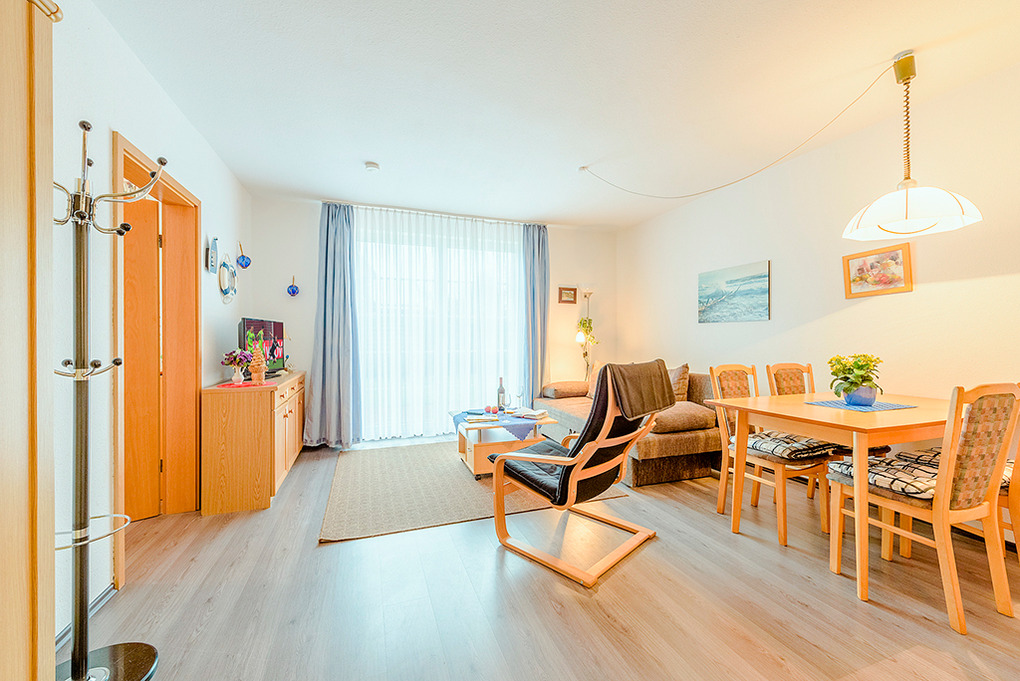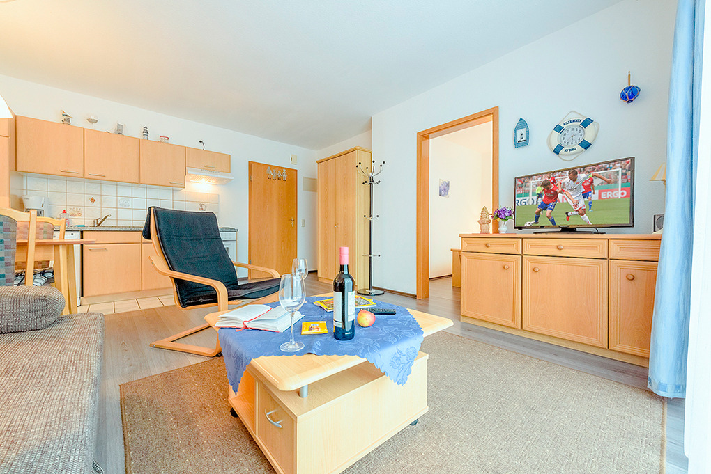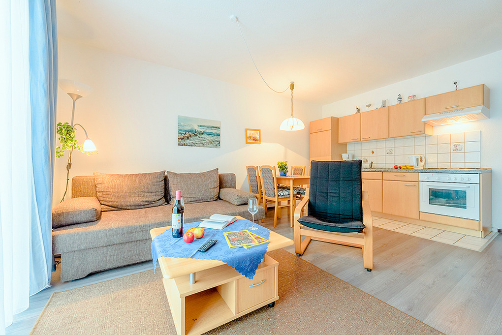 D 66.2 Wohnung 1-4 Pers.: 2-Zimmerwohnung mit 35 qm Wohnfläche, Parterre. Wohn-/Essraum mit Couchgarnitur (Ausziehcouch 2 Pers.), Sat-TV, Esstisch, Küchenzeile (Backofen). Doppelzimmer. Bad/WC. Terrasse.