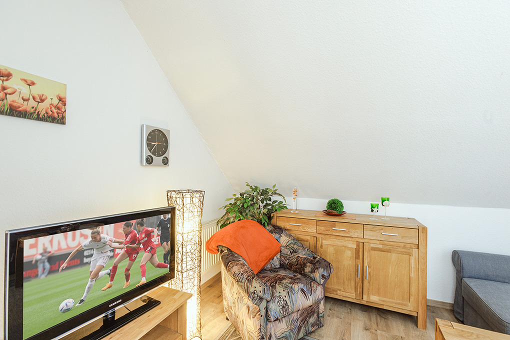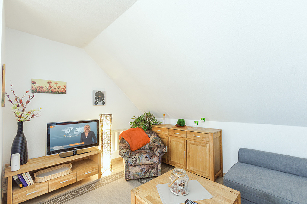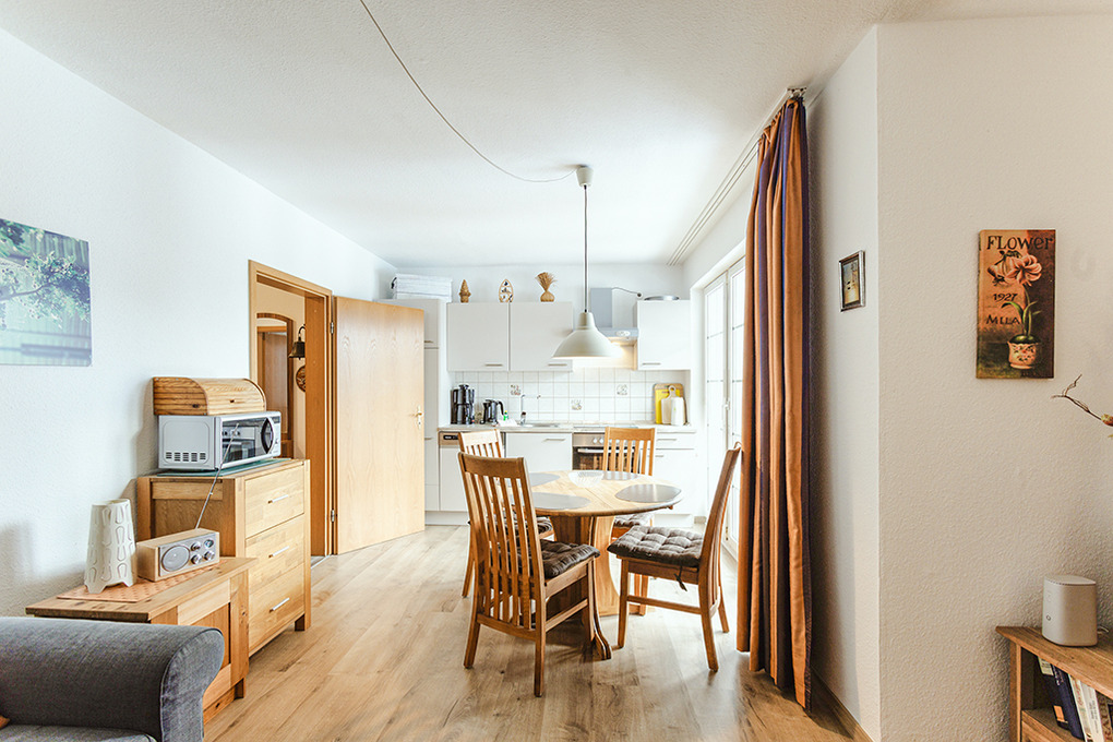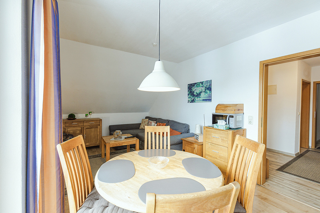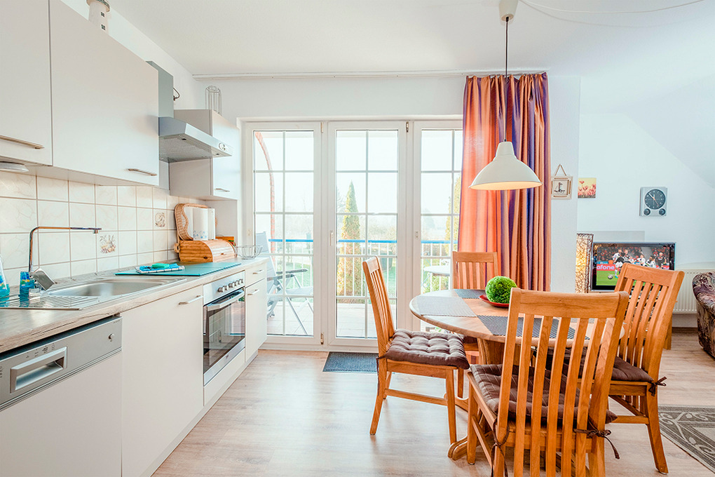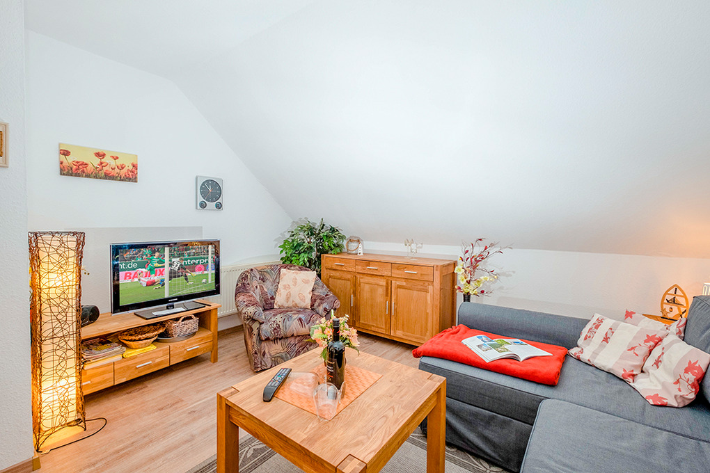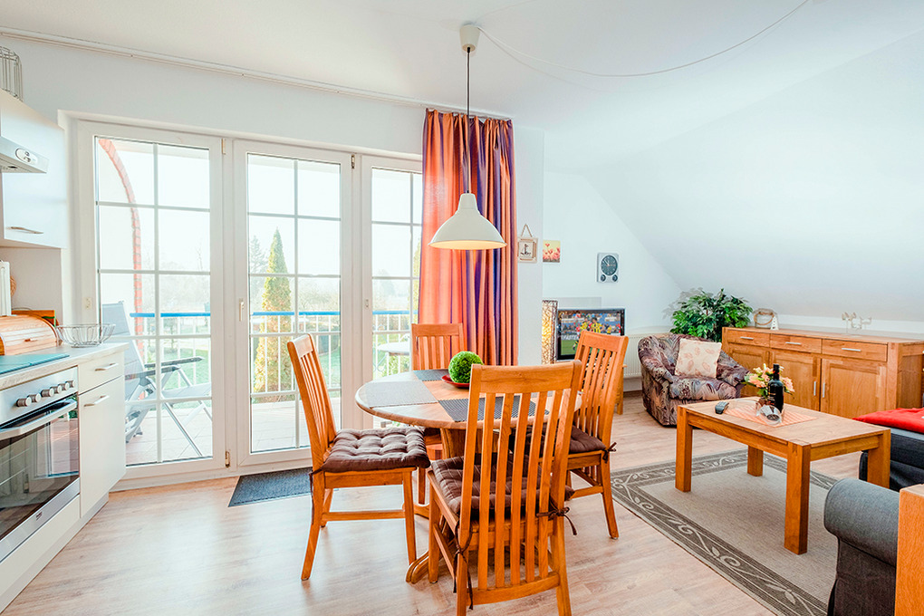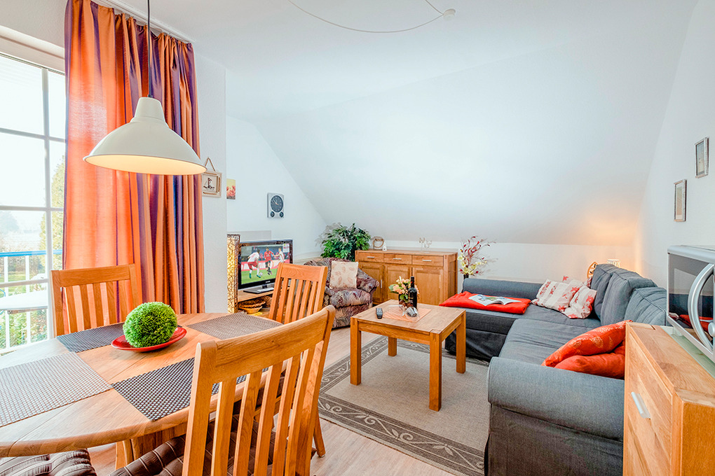 D 66.3A Wohnung 1-4 Pers.: 2-Zimmerwohnung mit 50 qm Wohnfläche, 1. Etage. Wohn-/Essraum mit Couchgarnitur (Ausziehcouch 2 Pers.), Sat-TV, Esstisch, Küchenzeile (Backofen). Doppelzimmer. Bad/WC. Balkon.