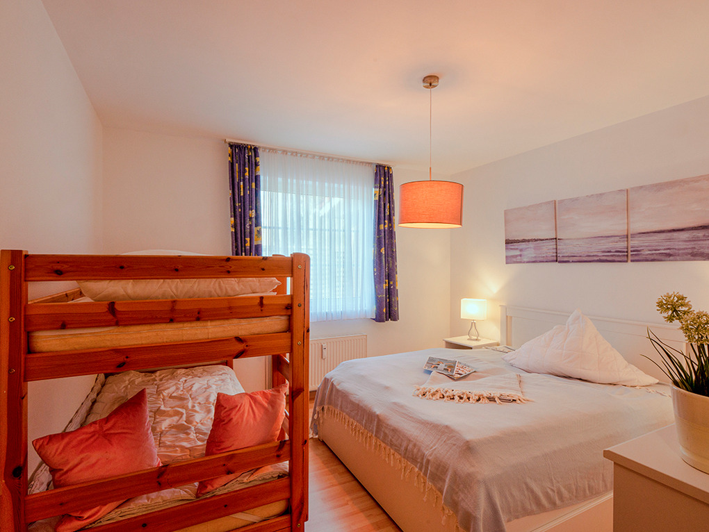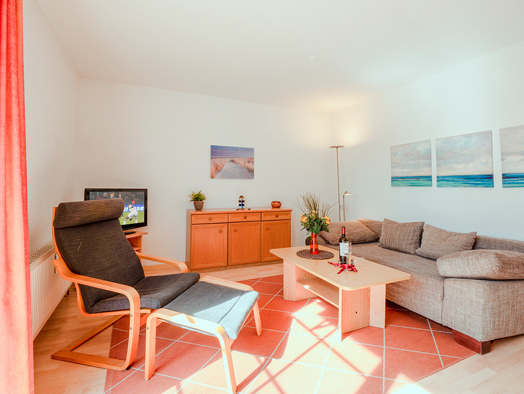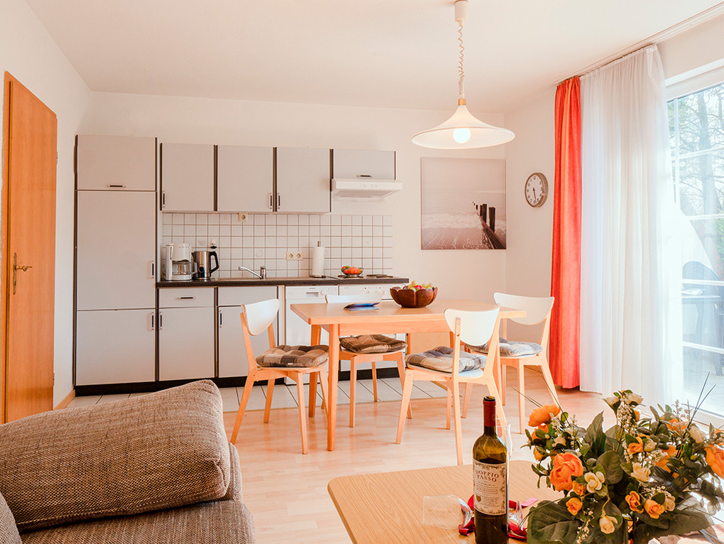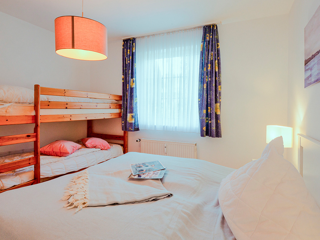 D 66.3B Wohnung 1-4 Pers.: 2-Zimmerwohnung mit 50 qm Wohnfläche, Parterre. Wohn-/Essraum mit Couchgarnitur (Ausziehcouch 2 Pers.), Sat-TV, Esstisch, Küchenzeile (Spülmaschine, Backofen). Doppelzimmer. Bad/WC. Terrasse.