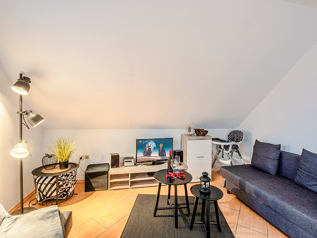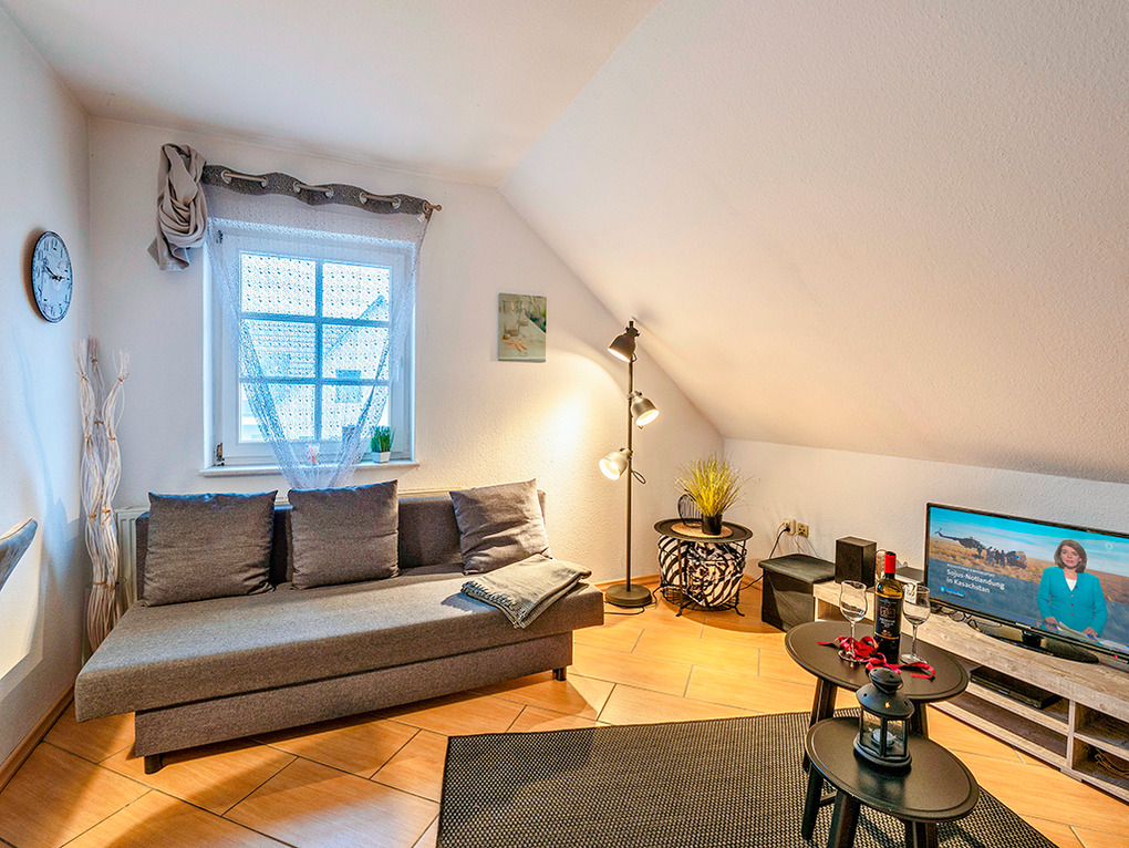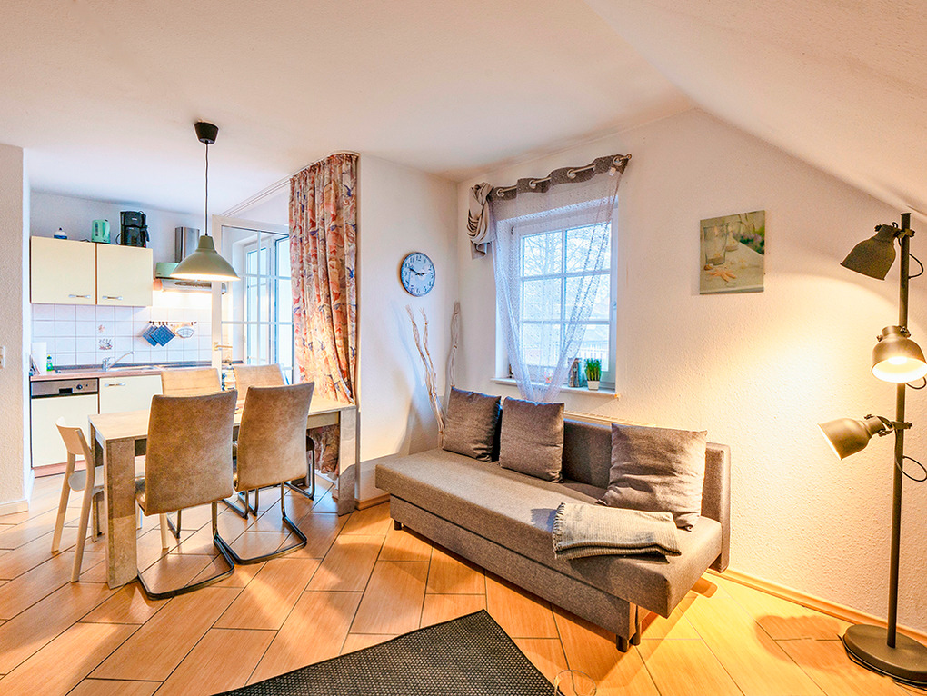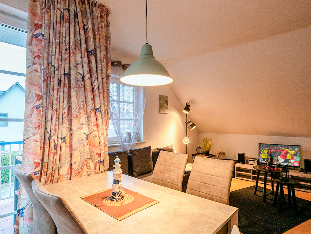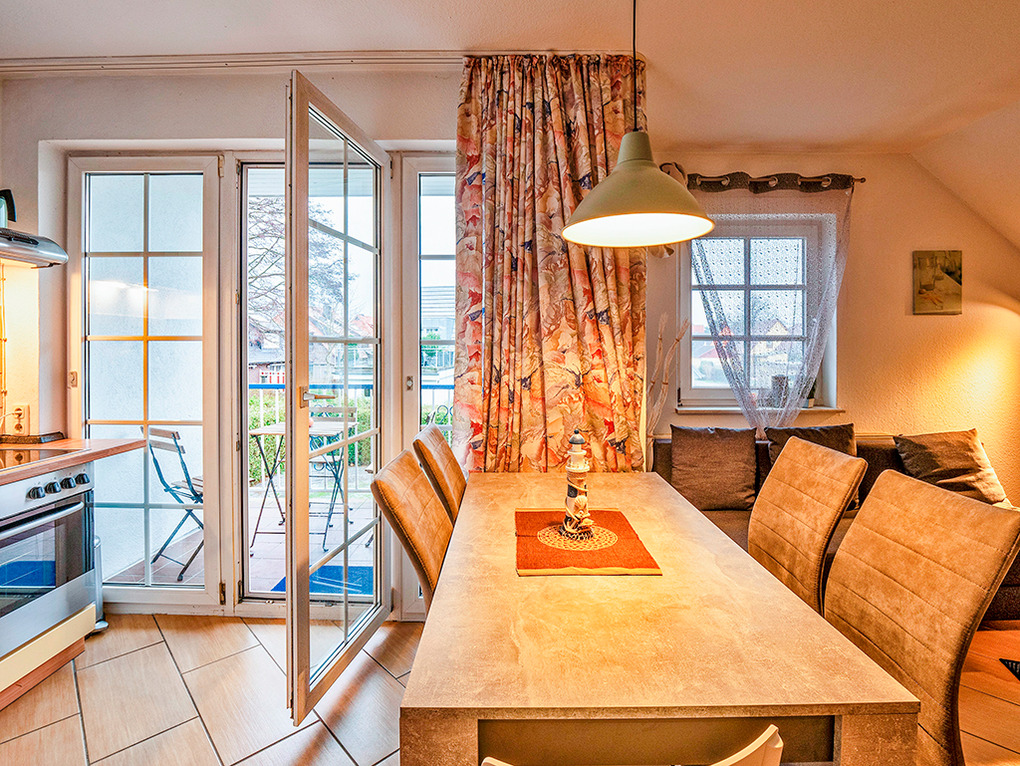 D 66.4C Wohnung 1-6 Pers.: 3-Zimmerwohnung mit 55 qm Wohnfläche, 1. Etage. Wohn-/Essraum mit Couchgarnitur (Ausziehcouch 2 Pers.), Sat-TV, Esstisch, Küchenzeile (Backofen). 2 Doppelzimmer. Bad/WC. Balkon