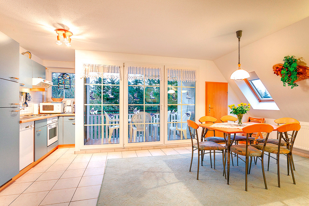D 66.22 Wohnung 1-4 Pers.: 2-Zimmerwohnung mit 55 qm Wohnfläche, 2. Etage. Heller, freundlicher Wohn-/Essraum mit Couchgarnitur (Ausziehcouch 2 Pers.), Sat-TV, Radio, Esstisch, gut ausgestatteter Küchenzeile (Backofen, Mikrowelle, Spülmaschine). Doppelzimmer. Bad/WC.