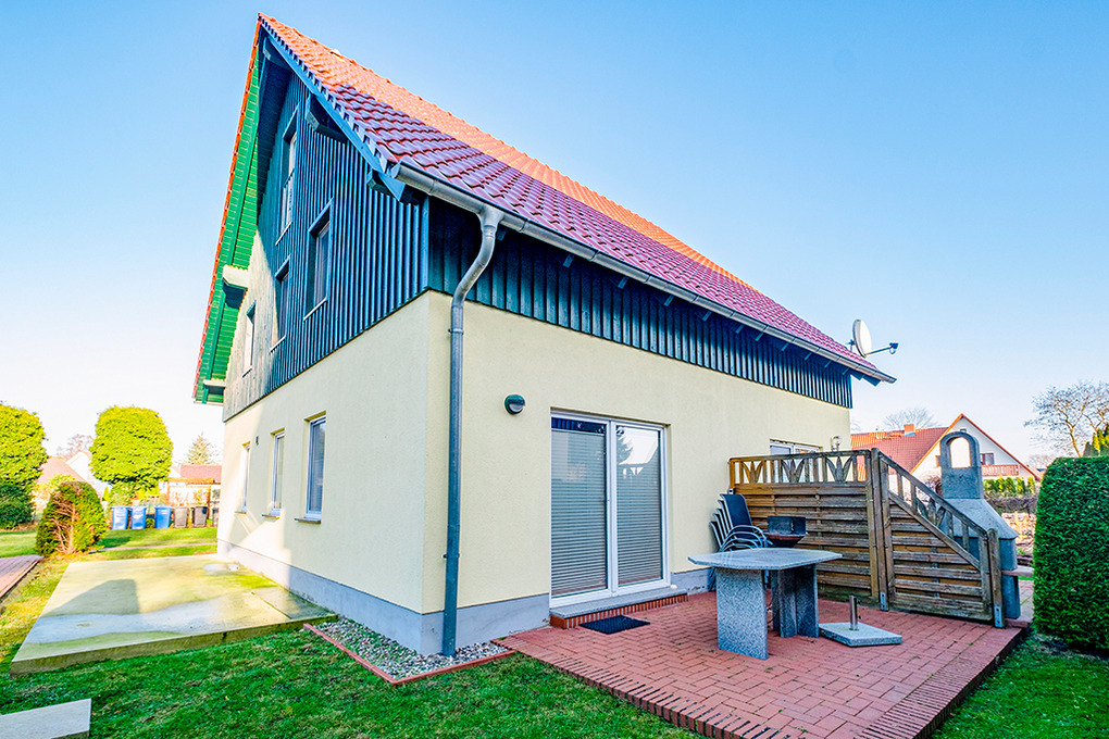 Haus: Zwei komfortable Doppelhaushälften mit großem Platzangebot und Sauna. Gemütliche Einrichtung. Waschmaschine/ Trockner. Kostenloser Internetzugang über W-Lan. Zentralheizung. Nichtraucherhäuser. 2 Balkone. Terrasse mit Sitzmöbeln, Grill. 2 Pkw Stellplätze/Ferienhaus.