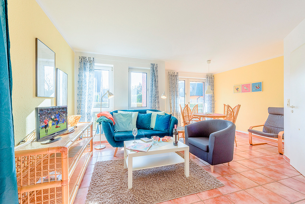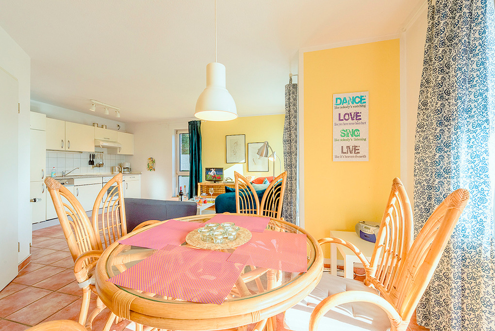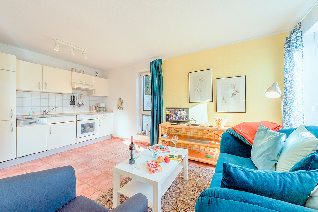 D 67.0101 Wohnung 2-4 Pers.: 3-Zimmerwohnung mit 62 qm Wohnfläche, Parterre. Wohn-/Essraum mit Couchgarnitur, Sat-TV, Esstisch, Küchenzeile (Backofen, Spülmaschine). Doppelzimmer. Doppelzimmer (120cm breit). Bad/WC. Terrasse.