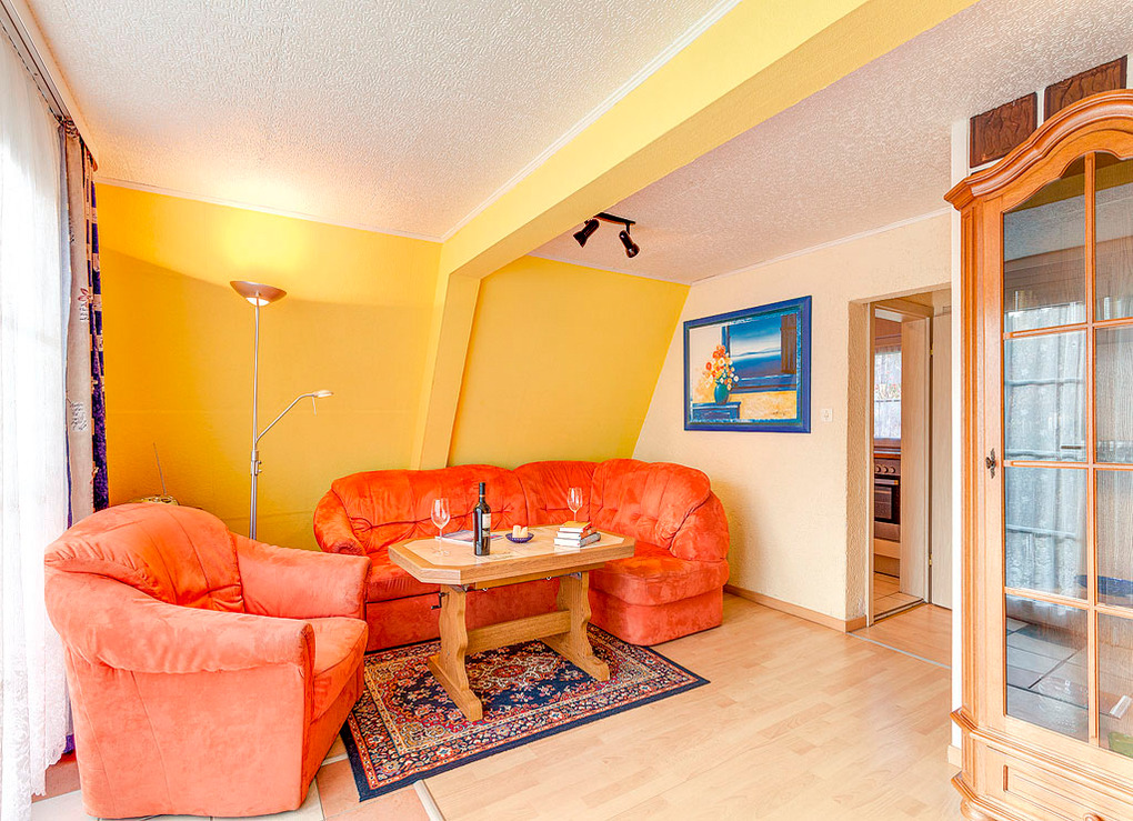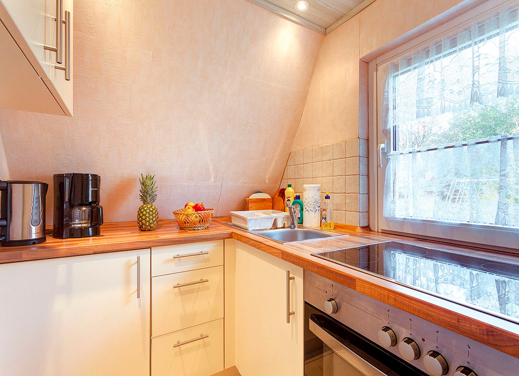 Haus: Kleine Ferienhausanlage mit 5 Finnhütten auf großzügigen Gartengrundstück (ca. 300 qm). Gemütliche, freundliche Einrichtung. Kostenloser Internetzugang über W-Lan. E-Heizung. Terrasse mit Sitzmöbeln. Pkw-Stellplatz am Haus.