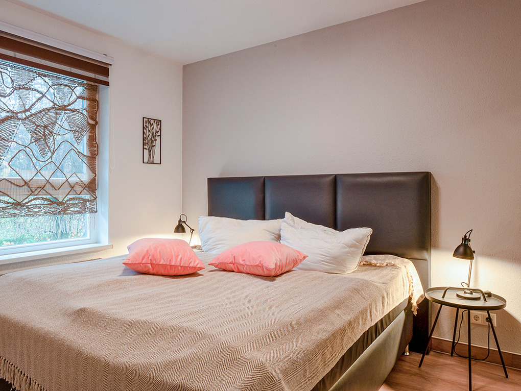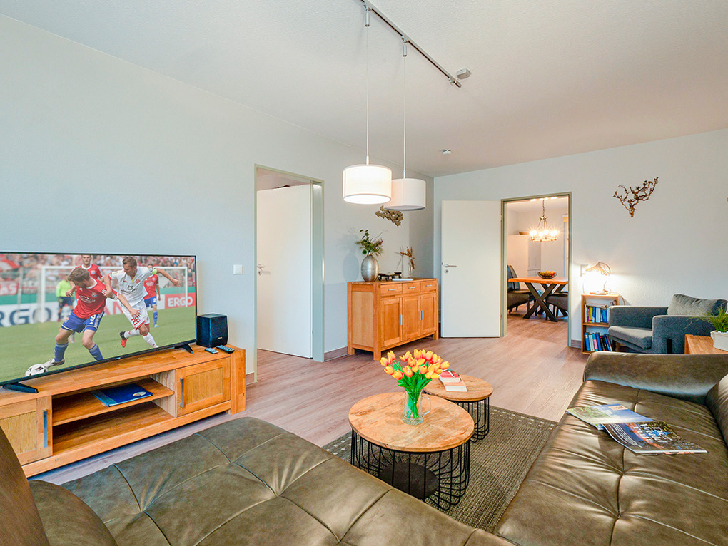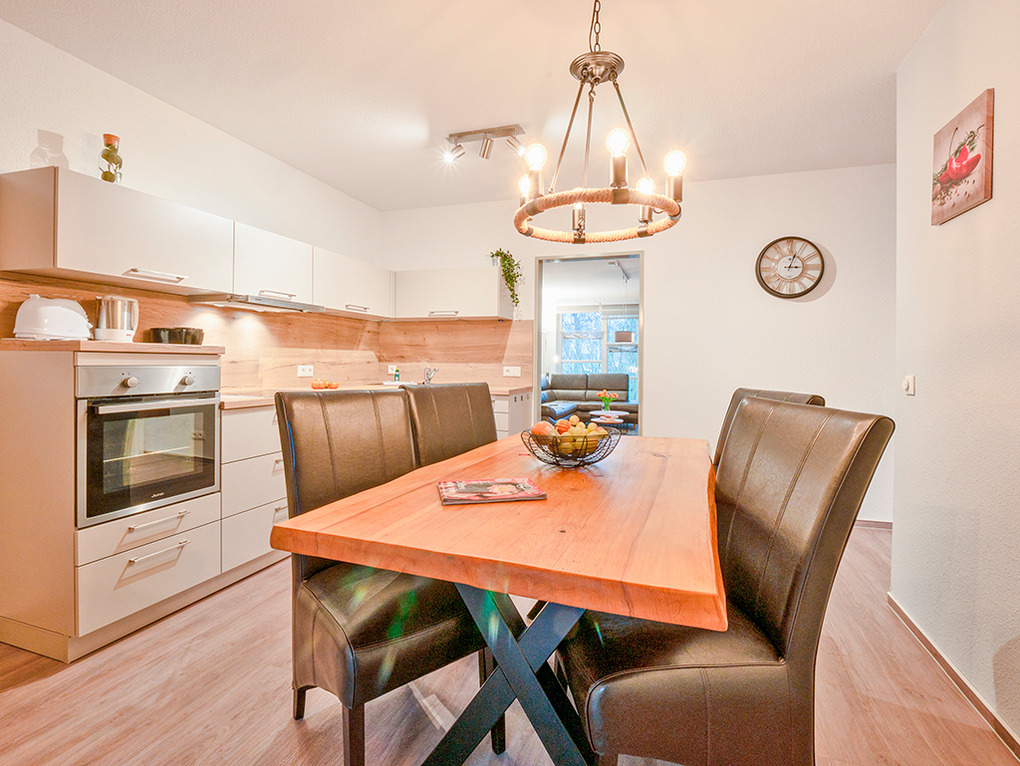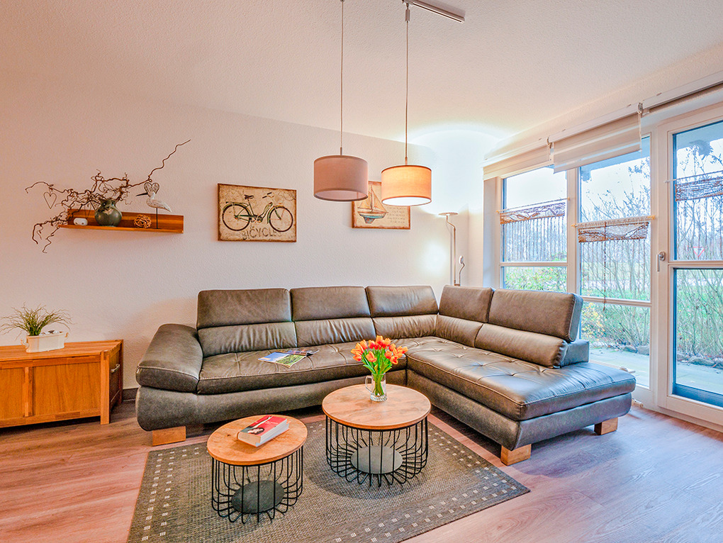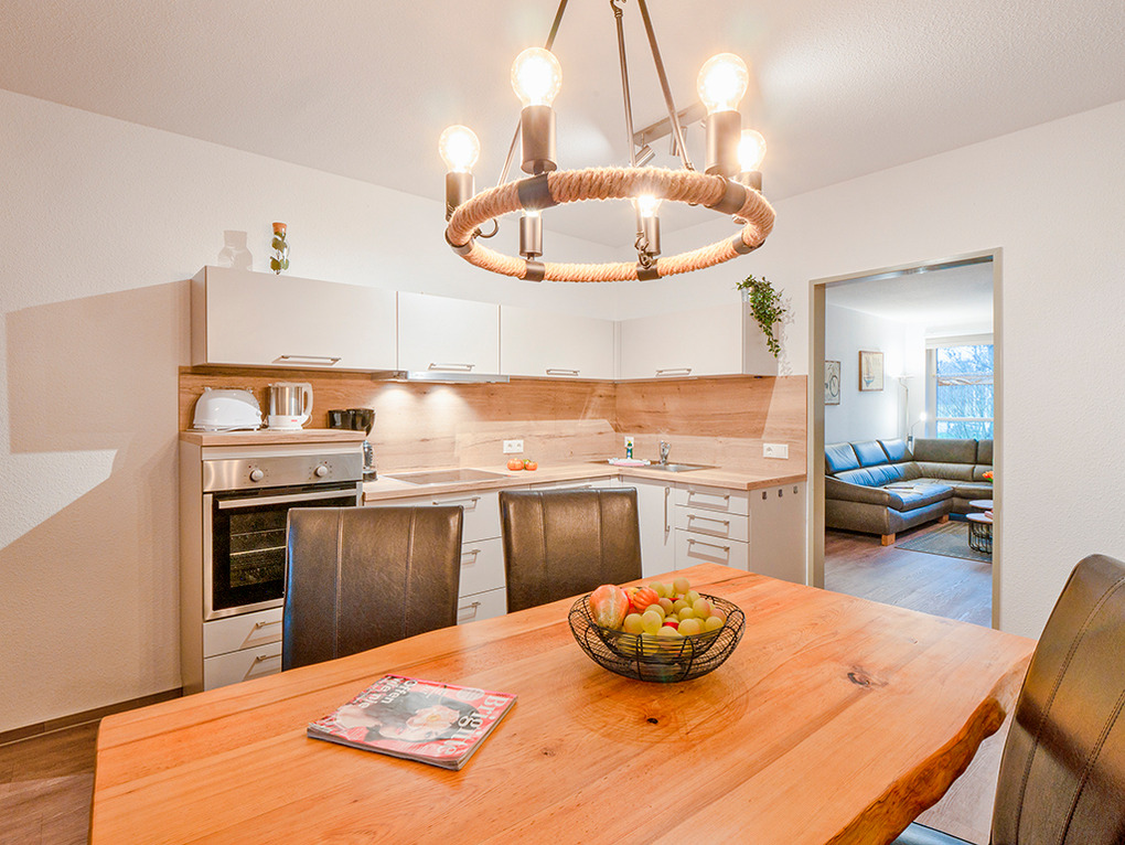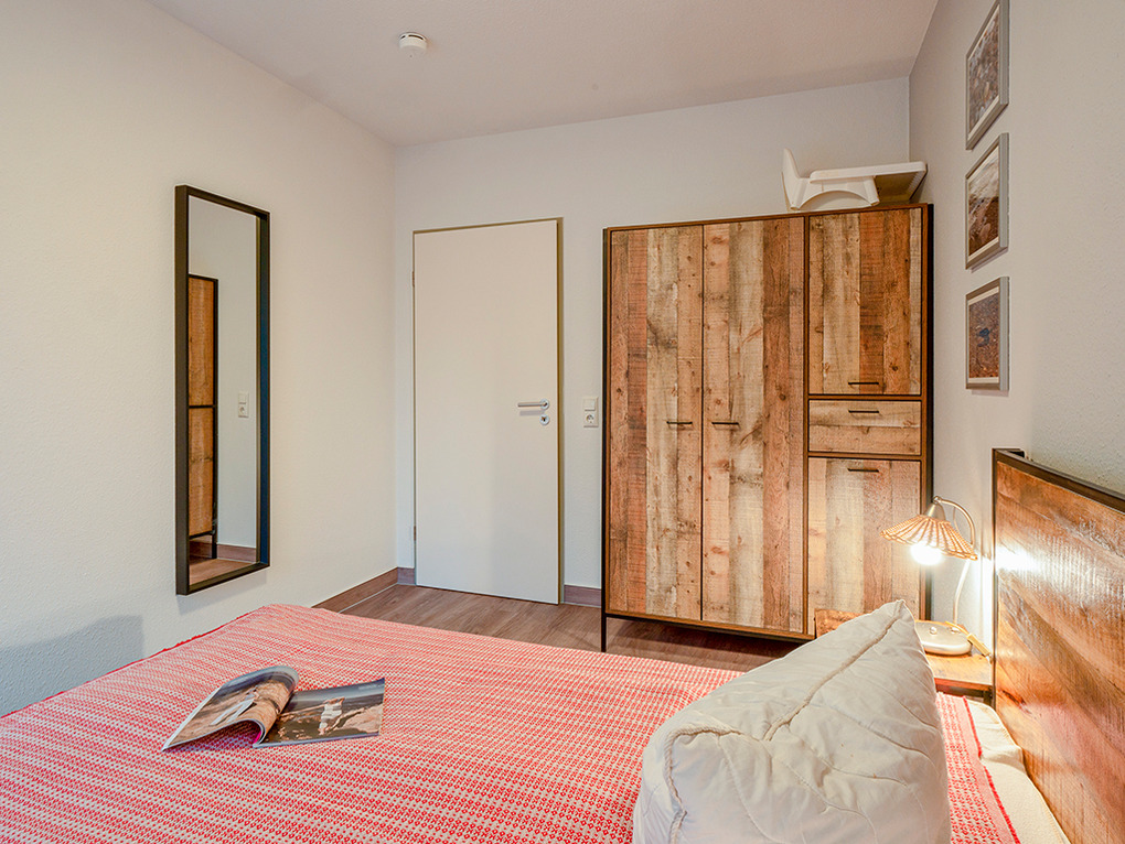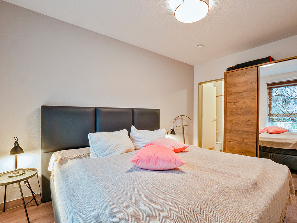 D 67.46 Wohnung 1-4 Pers.: Großzügige 3 1/2-Zimmerwohnung, 2019 renoviert, mit 70 qm Wohnfläche, Parterre. Freundlicher Wohnraum mit gemütlicher Couchgarnitur, Flachbild-Sat-TV. Separate Küche mit Esstisch, moderner Küchenzeile (Backofen, Spülmaschine). 2 Doppelzimmer. Bad: Du/Bw, Wb, WC. Terrasse mit Sitzmöbeln.