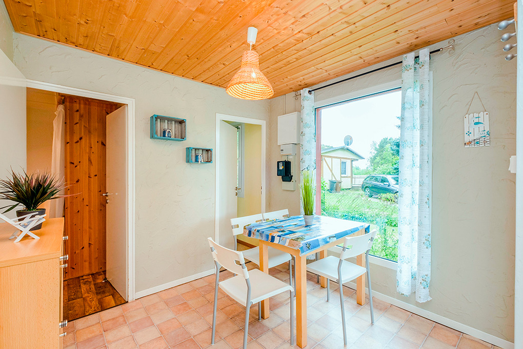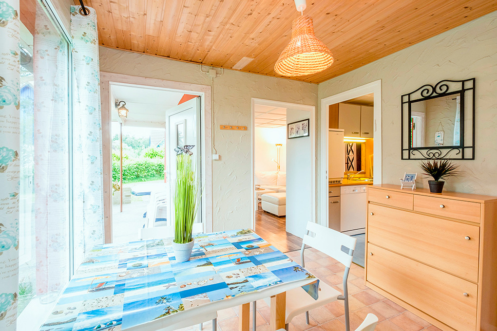 D 67.58 Bungalow 1-4 Pers.: 3-Zimmerhaus mit 45 qm Wohnfläche. Wohn-/Essraum mit Couchgarnitur, Sat-TV, Radio/CD, Esstisch. Kleine, separate Küche (Backofen, Spülmaschine) mit Durchreiche zum Wohnbereich. Doppelzimmer. Kleines 2-Bettzimmer mit Etagenbett. Bad/WC.