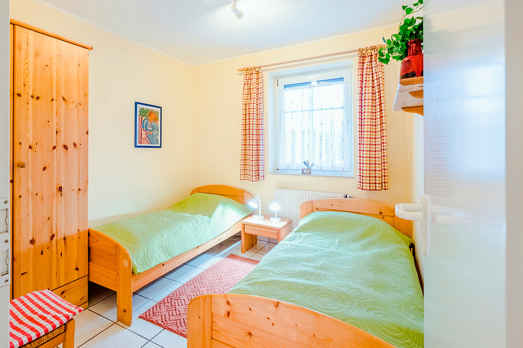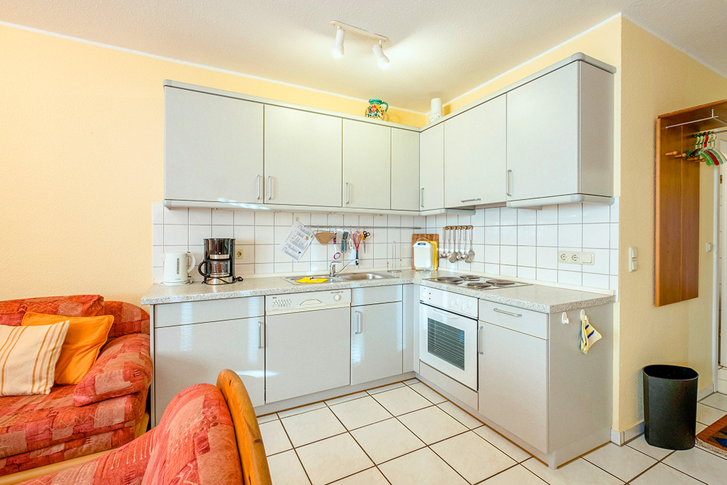 D 67.0703 Wohnung 1-4 Pers.: 3-Zimmerwohnung mit 50 qm Wohnfläche, Parterre. Wohn-/Essraum mit Couchgarnitur, Flachbild-Sat-TV, Esstisch, Einbauküche (Spülmaschine, Backofen). Bad/WC. Doppelzimmer. 2-Bettzimmer. Terrasse.