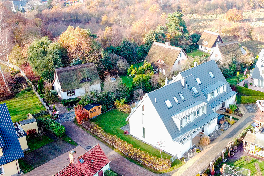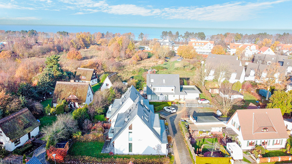 Ort: Zingst. Zentrale, dennoch ruhige Lage in einer Wohnsiedlung. Ostseestrand mit Seebrücke 600 m. Ortsmitte mit Geschäften, Restaurants 500 m.