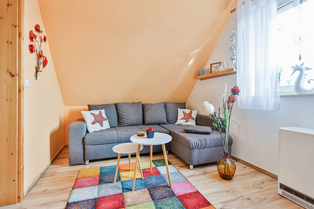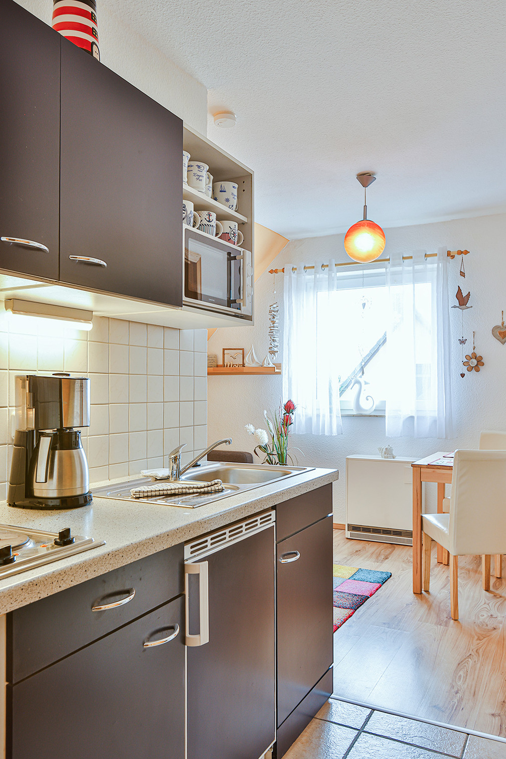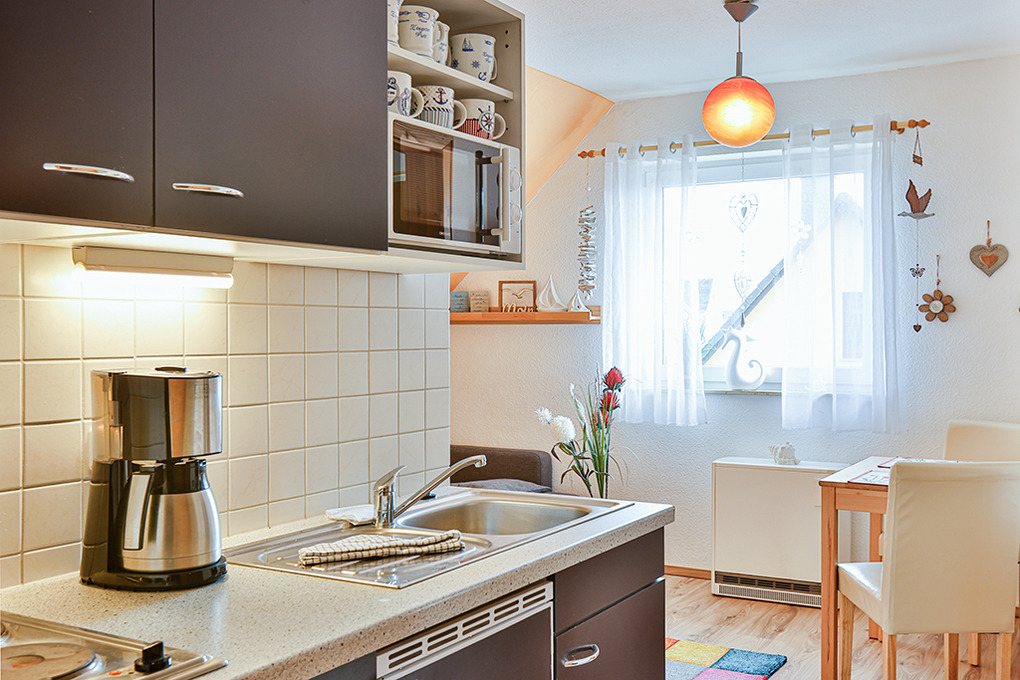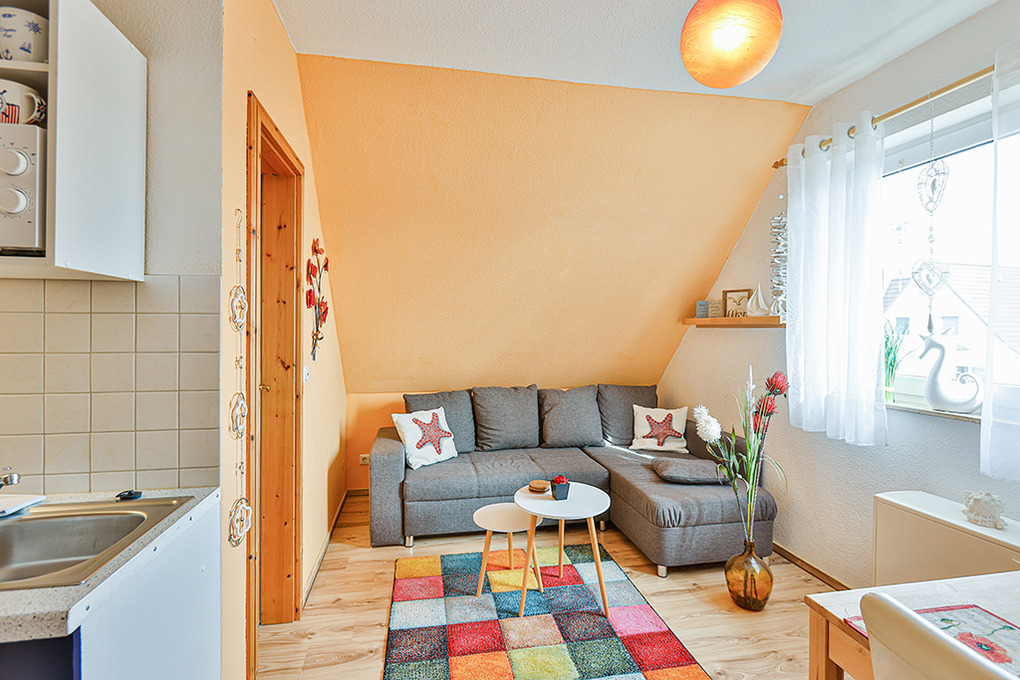 D 67.87A Wohnung 1-2 Pers.: 2-Zimmerwohnung mit ca. 30 qm Wohnfläche, 1. Etage. Wohn-/Essraum mit Sitzgarnitur, Sat-TV, Pantryküche (2 Pl. E-Herd). Doppelzimmer. Bad/WC.