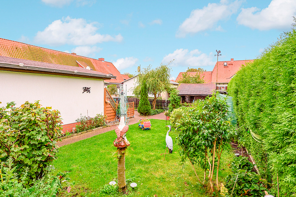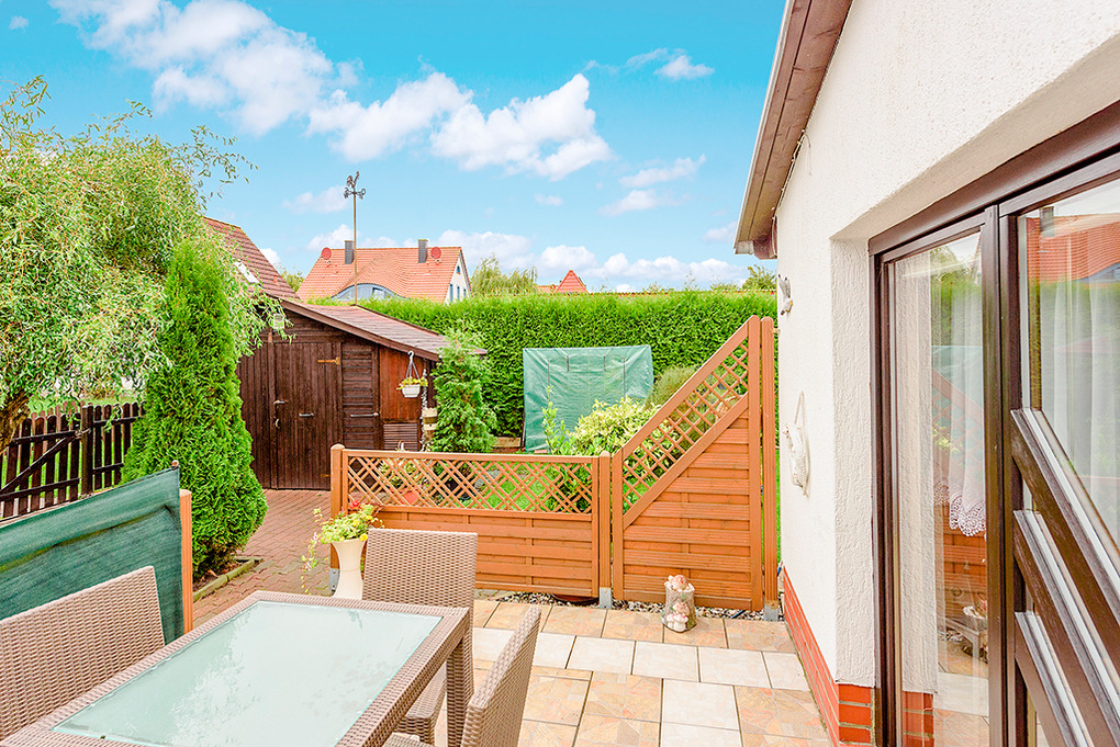 Haus: Schönes Ferienhaus auf gepflegtem Gartengrundstück des Vermieters. Helle, freundliche Einrichtung. Kostenloser Internetzugang über W-Lan. Zentralheizung. Terrasse mit Sitzmöbeln, Sonnenschirm, Grill, Windschutz. 1 Pkw-Stellplatz am Haus.