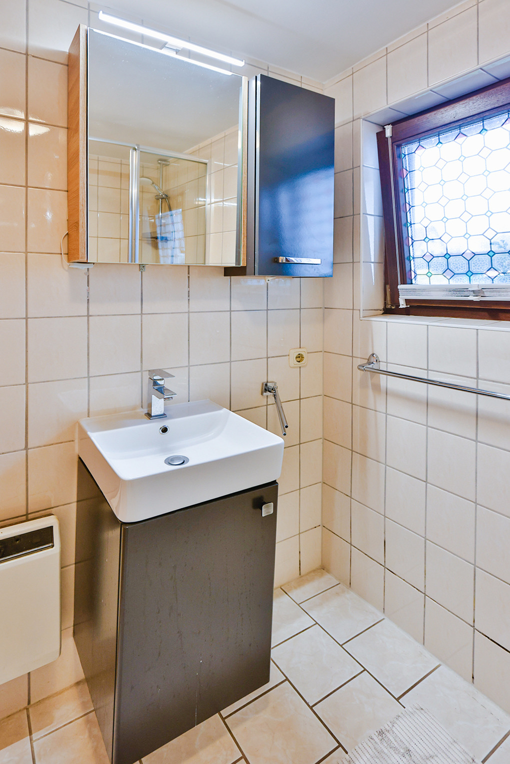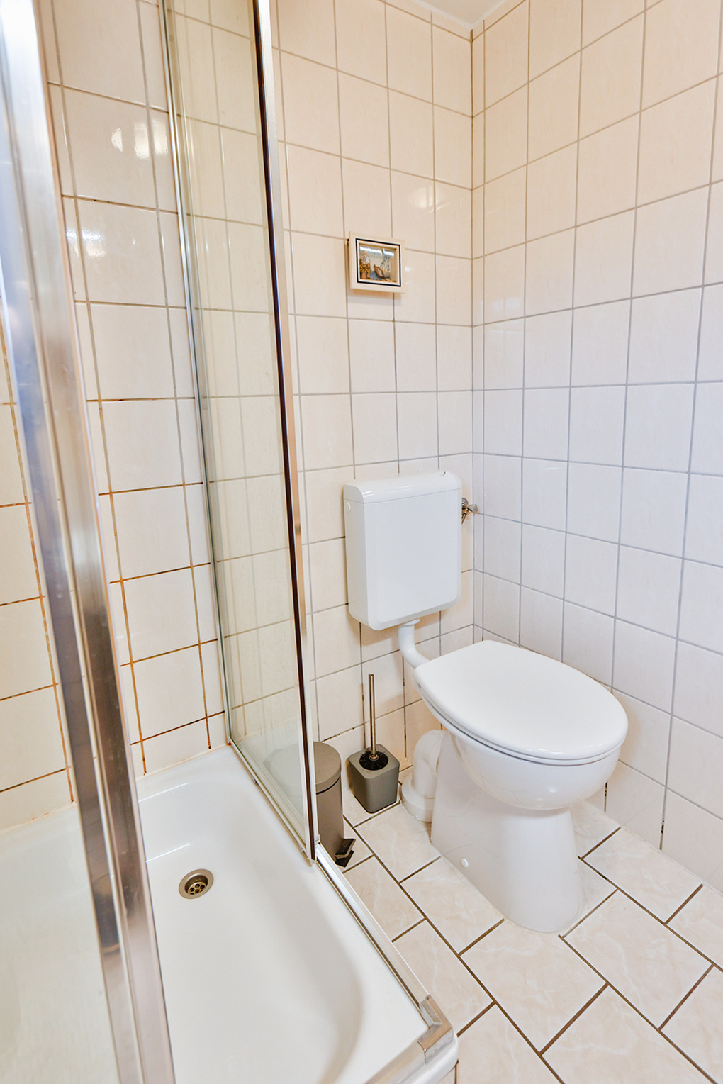 D 67.90 Ferienhaus 1-2 Pers.: 2-Zimmerhaus mit 45 qm Wohnfläche. Parterre: Wohn-/Essraum mit Couchgarnitur, Sat-TV, Radio/CD, Esstisch. Separate Küche mit 2 Platten Cerankochfeld, Mikrowelle. Doppelzimmer. Bad: Dusche, Wb, WC.