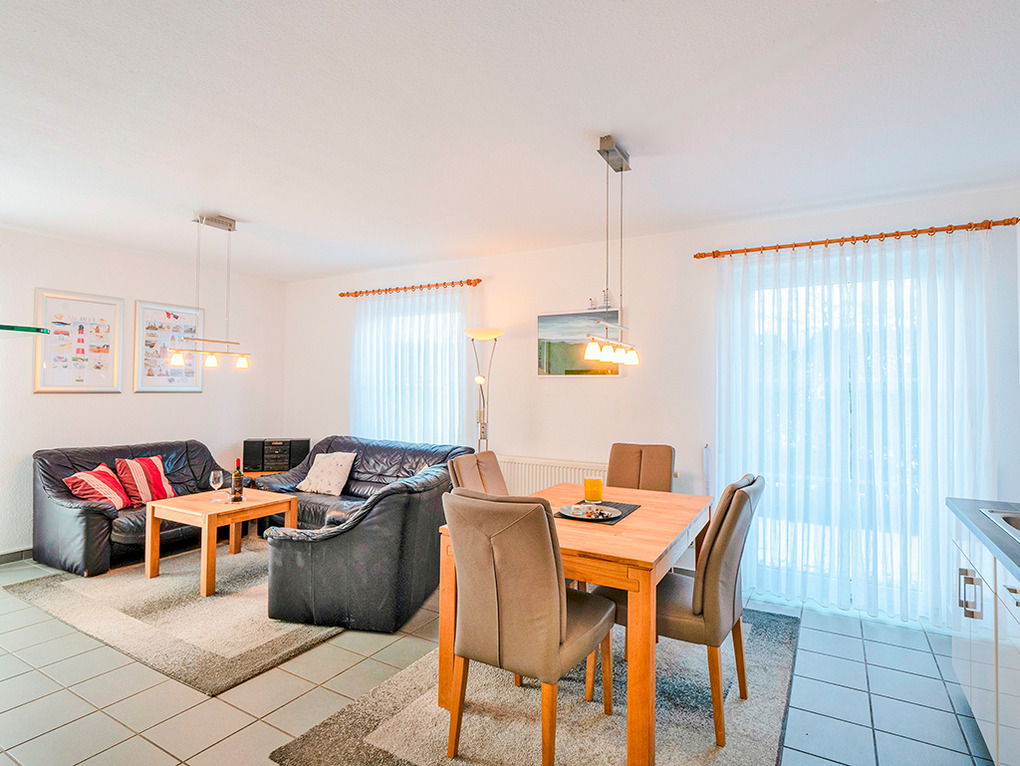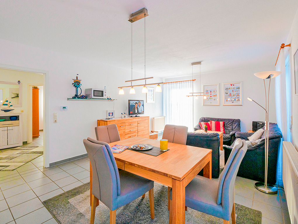 D 67.0901 Wohnung 1-4 Pers.: 3-Zimmer-Nichtraucherwohnung mit 60 qm Wohnfläche. Wohn-/Essraum mit gemütlicher Sitzgarnitur, Sat-TV, Esstisch, Küchenzeile (Backofen, Mikrowelle, Spülmaschine). Doppelzimmer. 2-Bettzimmer. Bad/WC. Terrasse mit Sitzmöbeln.