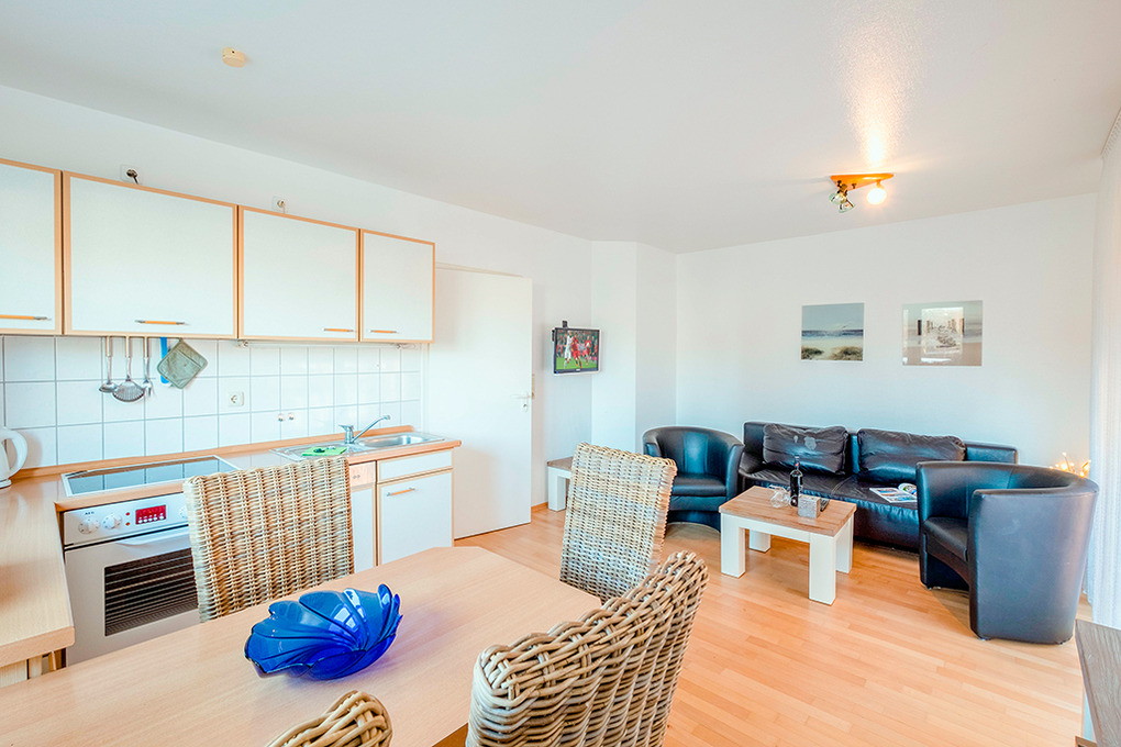 D 67.0907 Wohnung 2-4 Pers.: 2-Zimmerwohnung mit 40 qm Wohnfläche, in 2013 komplett renoviert. Wohn-/Essraum mit Couchgarnitur (Ausziehcouch 2 Pers.), Sat-TV, Esstisch, Küchenzeile (Backofen, Spülmaschine). Doppelzimmer. Bad/WC. Balkon mit Sitzmöbeln.