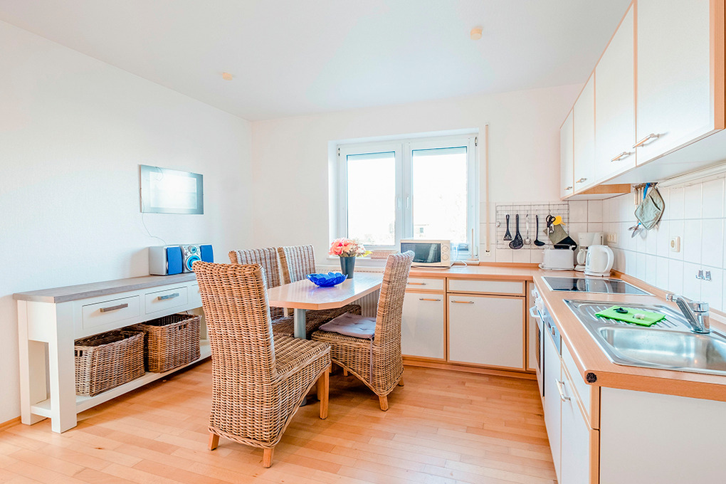 D 67.0902 Wohnung 2-4 Pers.: 3-Zimmer-Nichtraucherwohnung mit 60 qm Wohnfläche. Wohn-/Essraum mit gemütlicher Sitzgarnitur, Sat-TV, DVD, Esstisch, Küchenzeile (Backofen, Spülmaschine, Doppelzimmer. 2-Bettzimmer. Bad/WC. Terrasse mit Sitzmöbeln.