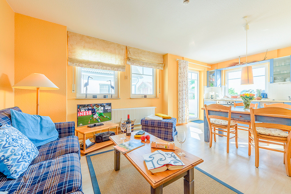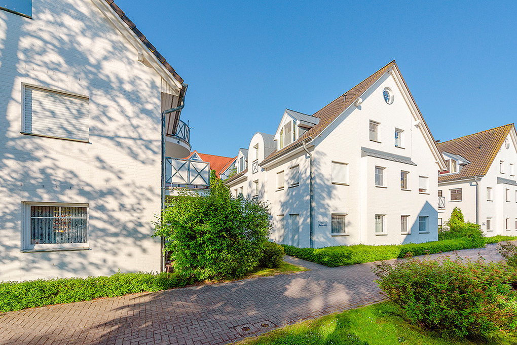 Haus: Moderne Apartmenthäuser mit komfortablen Ferienwohnungen in beschaulicher Lage am Bodden. Geschmackvolle, komfortable Möblierung. Kostenlosem Internetanschluss über W-Lan. Zentralheizung. Nichtraucherwohnungen. Balkon oder Terrasse mit Sitzmöbeln. Fahrradschuppen. 1 Pkw-Stellplatz/Fewo.