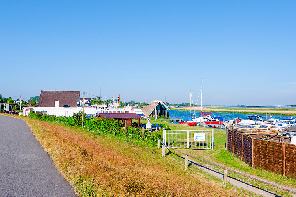 Ort: Ostseebad Zingst. Ruhige Lage, unmittelbar am malerischen Bodden, 50 m entfernt vom kleinen, idyllischen Hafen. Hier können Sie im Herbst vom Deich aus die Kranichzüge beobachten. Optimaler Ausgangspunkt für ausgiebige Deichwanderungen. Ortsmitte 500 m. Ostseestrand 1200 m.