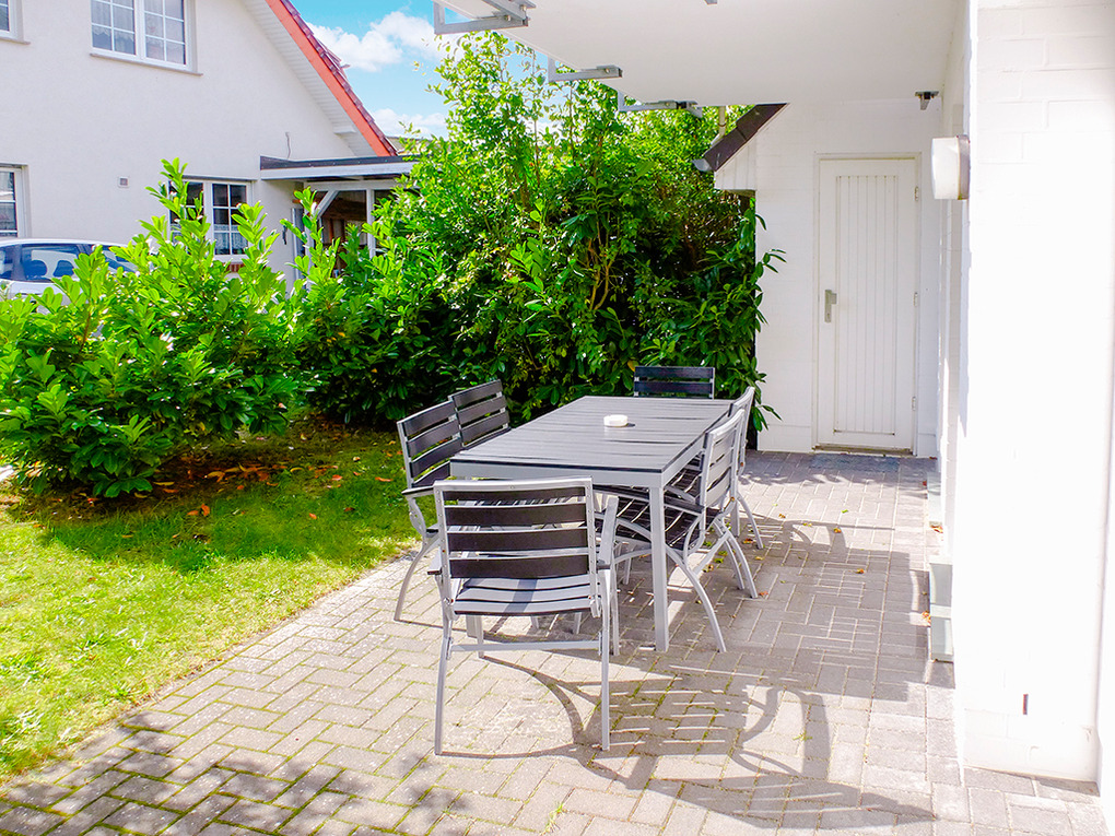 Haus: Drei moderne Apartmenthäuser mit jeweils 4 Ferienwohnungen. Komfortable, geschmackvolle Einrichtung. Fewo mit Terrasse. Kostenloser Internetzugang über W-Lan. Waschmaschine. Zentralheizung. Fahrradabstellraum. 1 Pkw-Stellplatz/ Fewo.