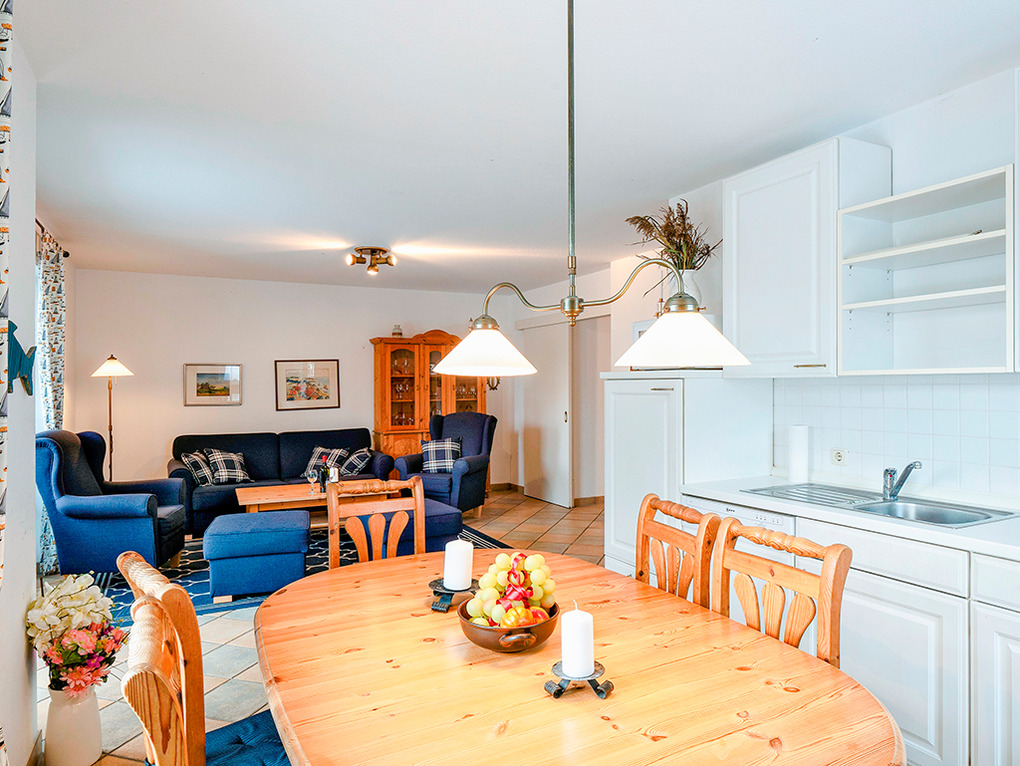 D 67.2210 Wohnung 1-6 Pers.: 3-Zimmerwohnung mit 68 qm Wohnfläche, Parterre. Wohn-/Essraum mit gemütlicher Couchgarnitur (Ausziehcouch 2 Pers.), Sat-TV, Esstisch, moderner Küchenzeile (Backofen, Mikrowelle, Spülmaschine). Doppelzimmer. 2-Bettzimmer. Bad: Du, Wb, WC, Waschmaschine. Separates WC. Terrasse.