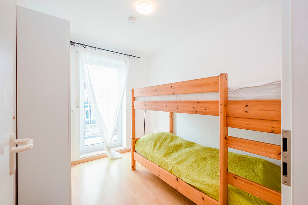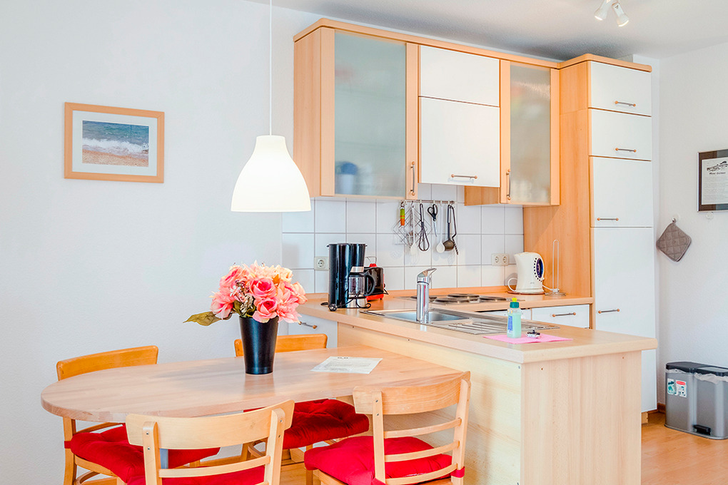D 67.2503 Wohnung 1-4 Pers.: 3-Zimmer-Nichtraucherwohnung mit 55 qm Wohnfläche, 1. Etage. Wohn-/Essraum mit Couchgarnitur, Sat-TV, Esstisch, Küchenzeile (Backofen, Mikrowelle, Spülmaschine). Doppelzimmer. 2-Bettzimmer mit Etagenbett. Bad: Du, Wb, WC, Waschmaschine. 2 Balkone.
