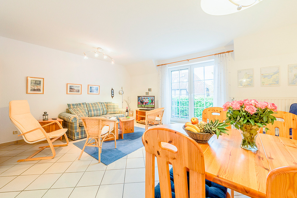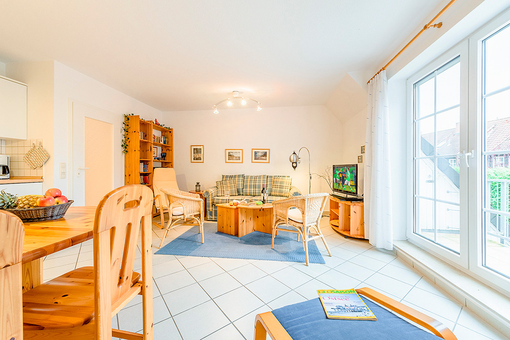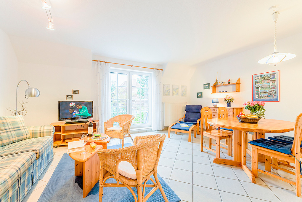 Haus: Schöne, moderne Reihenhäuser mit jeweils 5 Ferienwohnungen. Freundliche, geschmackvolle Einrichtung. Jede Fewo mit Sat-TV, Spülmaschine, teilweise auch mit Waschmaschine. Zentralheizung. Größtenteils mit Terrasse oder Balkon. 1 Pkw-Stellplatz /Fewo.