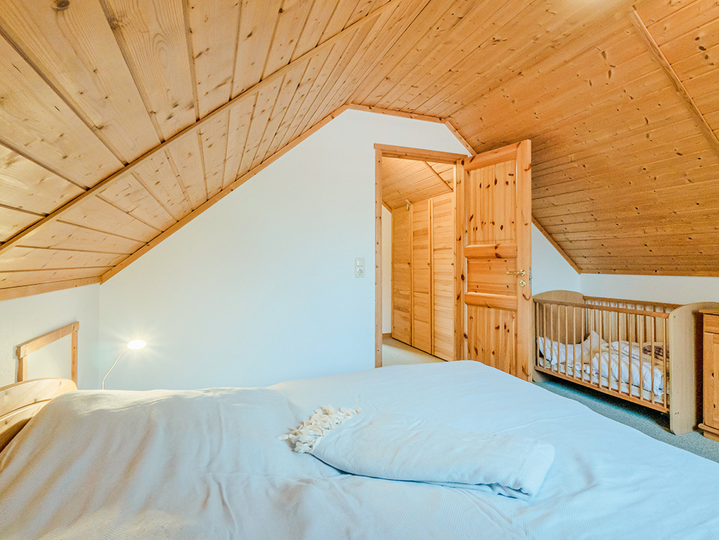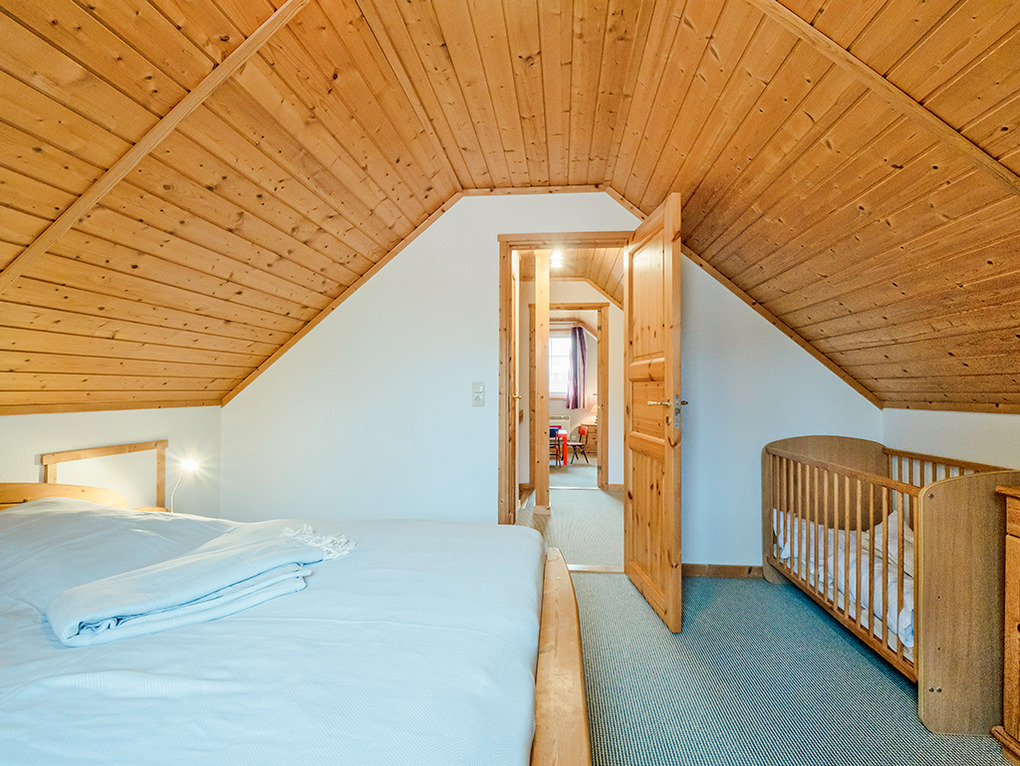 D 48.4A Ferienhaus 1-6 Pers.: 4-Zimmerhaus, 85 qm Wohnfläche über 2 Etagen. Großes Platzangebot. Parterre: Geschmackvoller, komfortabler Wohn-/Essraum mit Kaminofen, Couchgarnitur, Esstisch, moderner Einbauküche (Backofen, Mikrowelle, Spülmaschine). Doppelzimmer. Großes Bad mit Sauna, Du, Wb, WC, Waschmaschine. Dachgeschoss: Flur mit geräumigem Einbauschrank. Doppelzimmer mit Sitzgarnitur. 2-Bettzimmer. Separates WC. Fahrradschuppen.