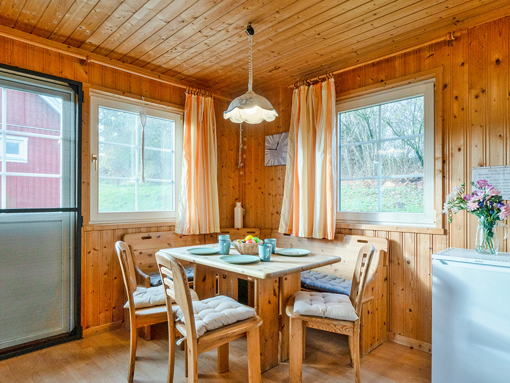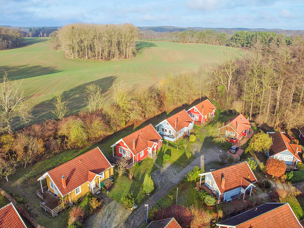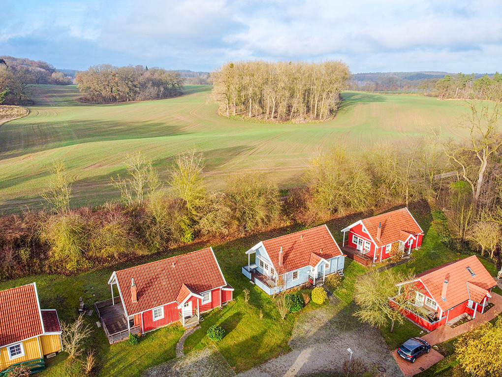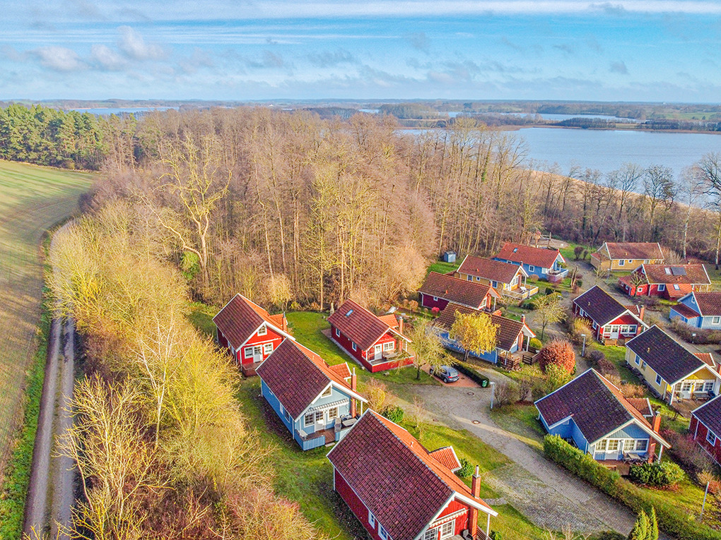 Haus: Sehr schöne familiäre Ferienhausanlage mit 23 Häusern im skandinavischen Stil. Gemütliches Ambiente durch Holzvertäfelungen im ganzen Haus. Alle Häuser mit Sauna und Kamin , viele mit Seeblick. Komfortable Einrichtung mit Kabel-TV, Radio, moderner Einbauküche. Kostenloser Internetzugang über W-Lan. E-Heizung. Warmwasser über Durchlauferhitzer. Schöne Terrasse mit Sitzmöbeln. Fahrradschuppen.