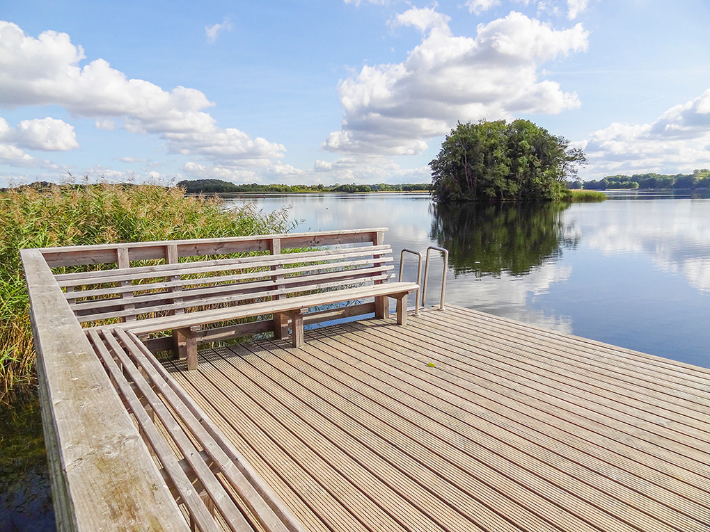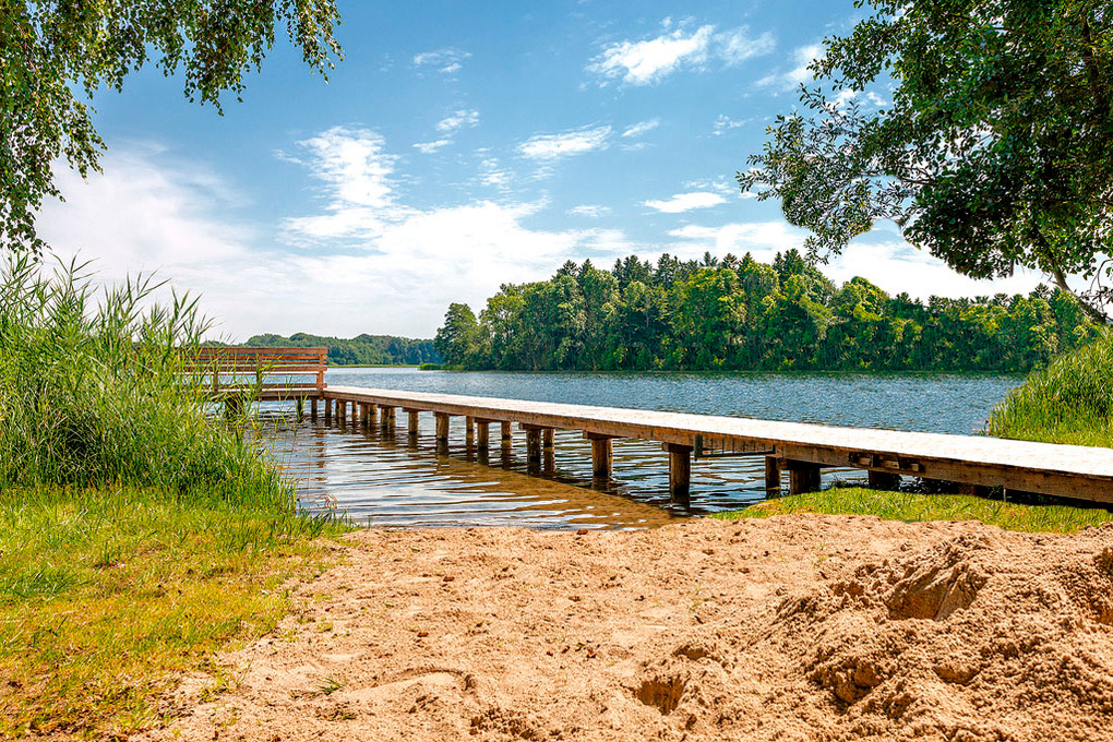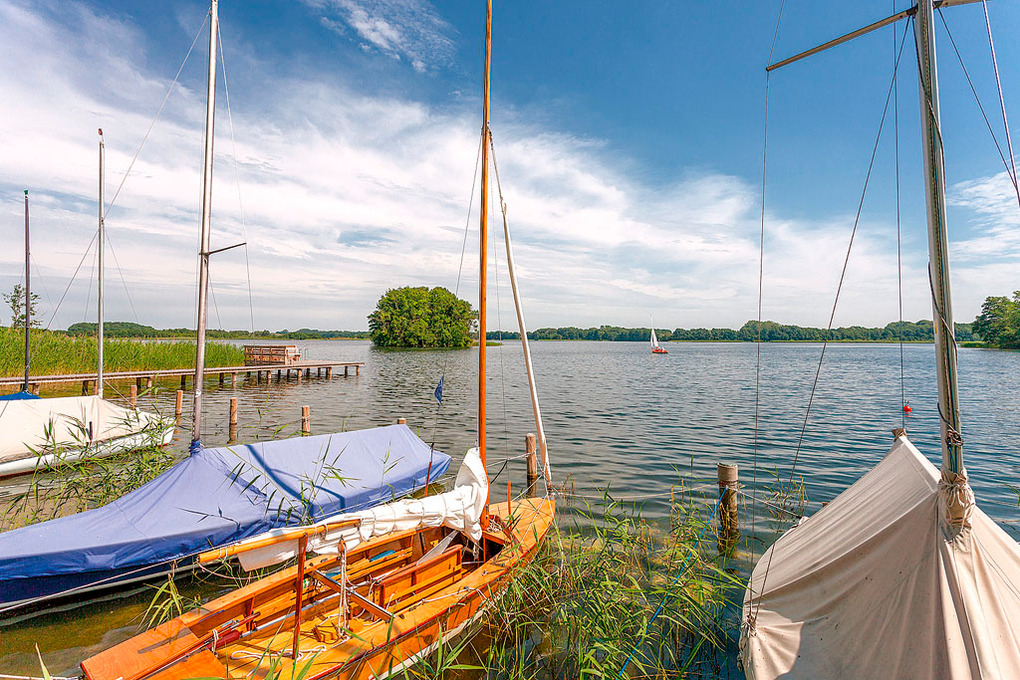 Ort: Krakow am See. Einzigartige, idyllische Lage direkt am Krakower See, auf naturbelassenem Grundstück mit altem Baumbestand. Zur Anlage gehörend: Badestelle mit Bootsteg (50 m), Kinderspielplatz. Ortsmitte mit Restaurants, Geschäften 1,9 km.
