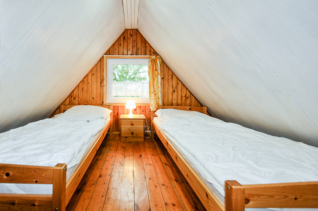 D 49.211 Finnhütte 1-4 Pers.: 3-Zimmerhaus mit ca. 40 qm Wohnfläche über 2 Etagen. Parterre: Wohnraum mit Couchgarnitur, Couchtisch, Sat-TV, Radio/CD, Esstisch, Küchenbereich (Backofen). Bad: bodengleiche Du, Wb, WC. Steile Stiege in die 1. Etage (Dachschrägen): 2-Bettzimmer mit eingeschränktem Seeblick. Weiteres 2-Bettzimmer.