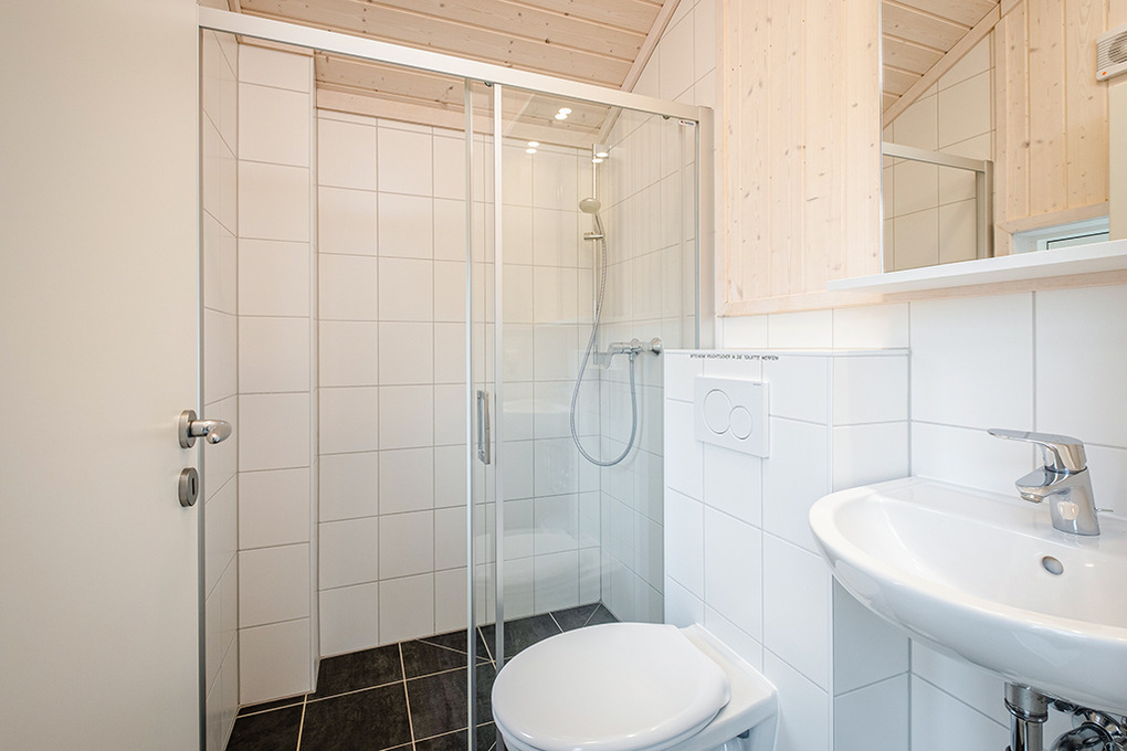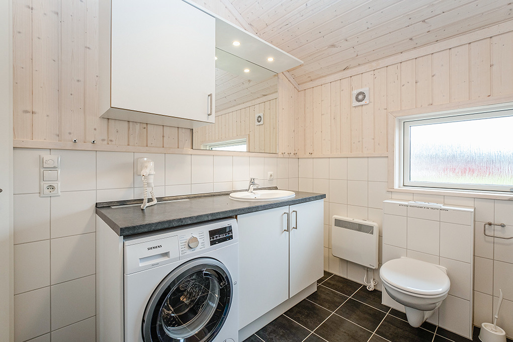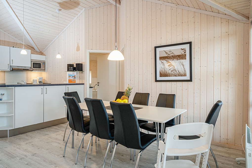 Haus: Gepflegtes Ferienresort mit farbenfrohen skandinavischen Ferienhäusern. Alle Ferienhäuser mit Sauna und Kaminofen. Helle, bis zum Dachgiebel ausgebaute Wohn-/Essbereiche mit großen Fensterfronten. Ansprechende Einrichtung, moderne Komfortausstattung. Internetzugang für bis zu 3 Geräte über W-Lan, Flachbild-Sat-TV, DVD, Radio/CD. Bäder mit Fußbodenheizung, Haarfön, Waschmaschine/Trockner, meist Whirlpool. Elektroheizung. Nichtraucherhäuser. Teilüberdachte Holzterrasse mit Sitz- und Liegemöbeln, Grill. Pkw-Stellplatz am Haus, weitere Stellplätze bei der Rezeption (je nach Verfügbarkeit).