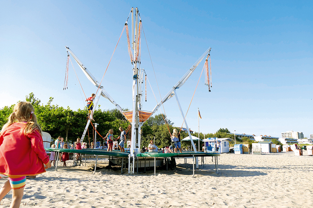 In der Anlage: großes Empfangsgebäude mit Rezeption, Bäckerei, Café, Post, Souvenirladen. Verleih von Fahrrädern, Bollerwagen, Strandkörben (jeweils Bestellung, Gebühr). Restaurant, Spielplatz, Sporthalle, Sportplatz. Eigene Beach-Bar am Strand.