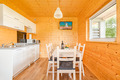 Haus: Schöne Ferienhaussiedlung auf einem großen, gepflegtem Grundstück am Waldrand, 2019 neu erbaut. Gemütliche Doppelhaushälften mit geschmackvoller Einrichtung. Internet (WLAN) über LTE. Heizung durch E-Radiator im Wohnzimmer (auf Wunsch). Warmwasser über E-Boiler (50 l). Terrasse mit Sitzmöbeln, gemauertem Grill zur gemeinschaftlichen Nutzung. In der Anlage: kleiner Spielplatz mit Schaukeln, Rutsche, Trampolin, Volleyballfeld. 1 Parkplatz/ Ferienhaus auf dem umzäunten Grundstück. Hinweis: Wir empfehlen eine Belegung mit maximal 5 Personen auf Grund der schmalen Schlafcouch (110 cm Breite) im Tagesraum.