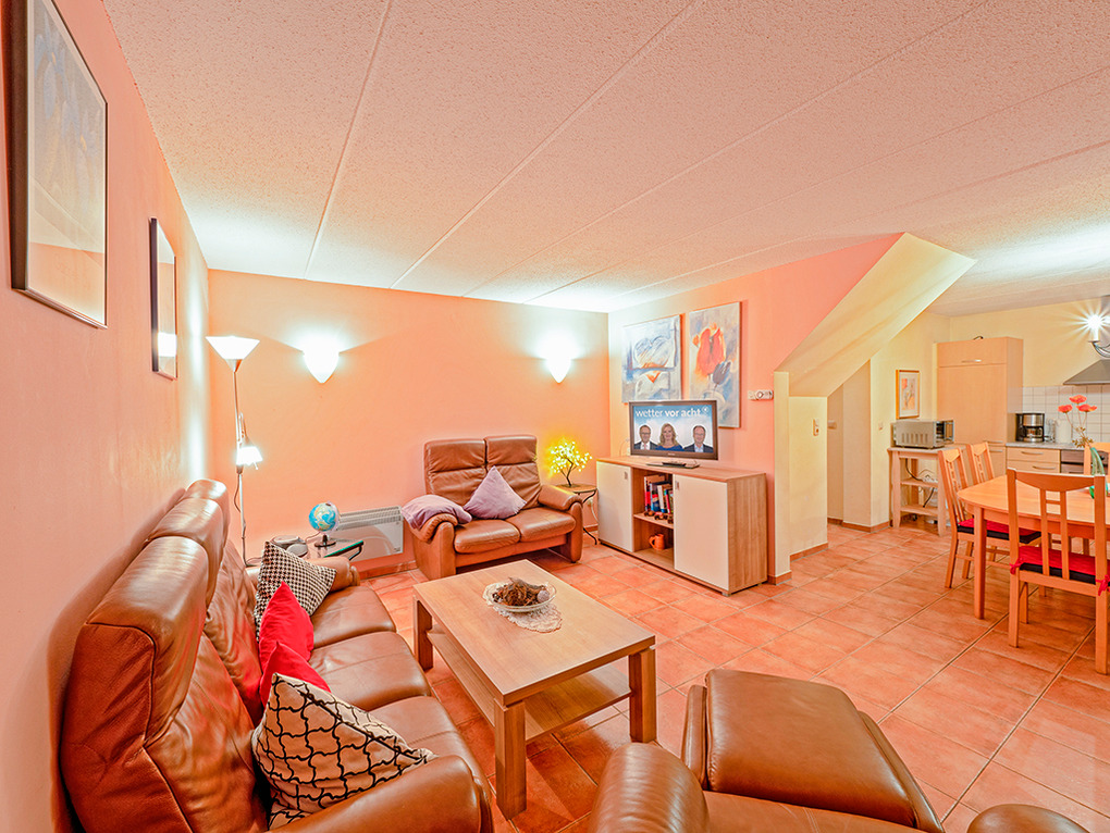 D 46.84A Ferienhaus 2-6 Pers.: 4-Zimmer-Reihenhaus mit 80 qm Wohnfläche über zwei Etagen. Parterre: Gemütlicher Wohn-/Essraum mit Couchgarnitur, Sat-TV, Radio/CD, Esstisch, Küchenzeile (Backofen, Spülmaschine). Doppelzimmer. Bad: Bw, Du, Wb, WC. 1. Etage: Zwei Doppelzimmer. Bad: Du, Wb, WC, Waschmaschine. Terrasse mit Sitzmöbeln.