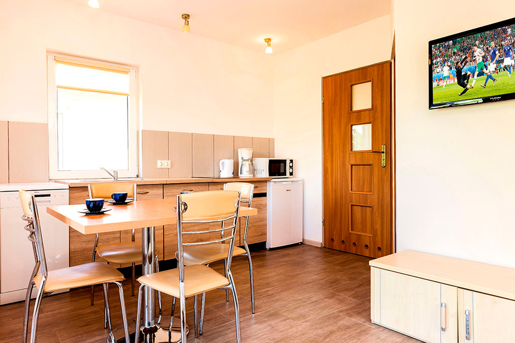 Ort: Dziwnowek, Ortsteil Wrzosowo. Ruhige Lage in einer neuen Wohnsiedlung. Angelstelle am Wrzosowski See 650 m. Lebensmittelladen 450 m. Pferdegestüt 400 m. Bade-/ Wassersportstrand am Wrzosowski See 1,4 km. Ortsmitte Dziwnowek mit Geschäften, Restaurants 1,6 km. Windsurfing-, Kitesurfing-Schule, Bootsverleih (Kajak, Tretboot) 2 km. Ostseestrand Dziwnowek 2 km. Kamien Pomorski 7 km.