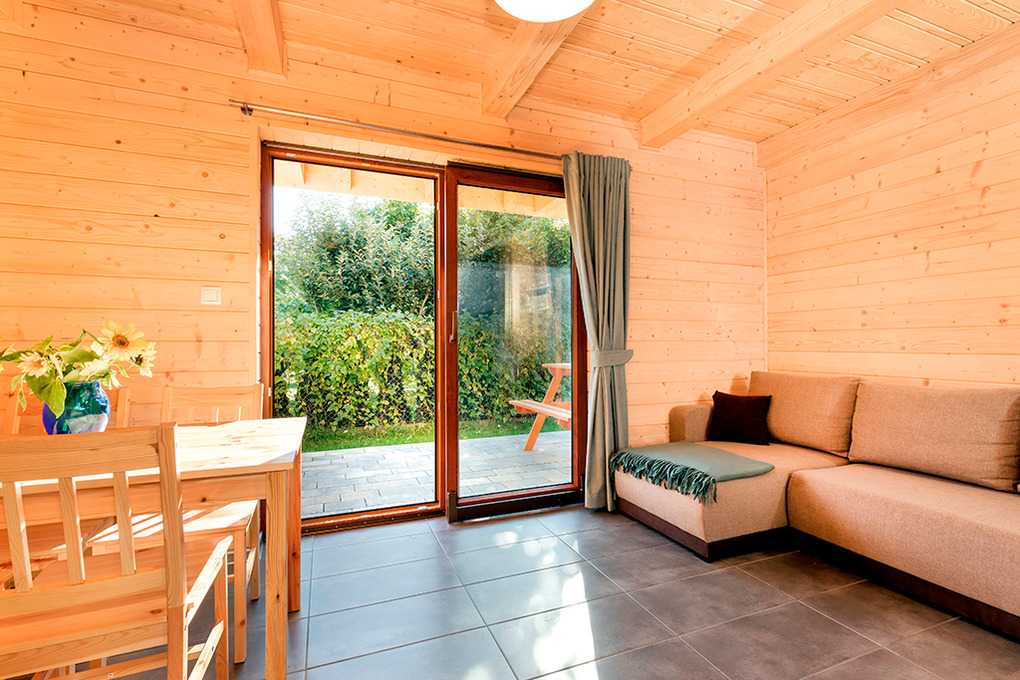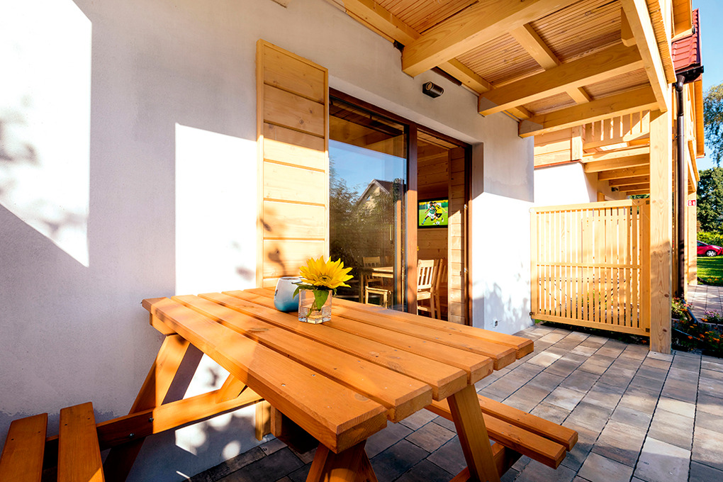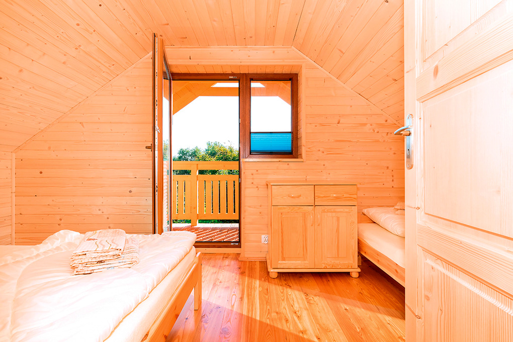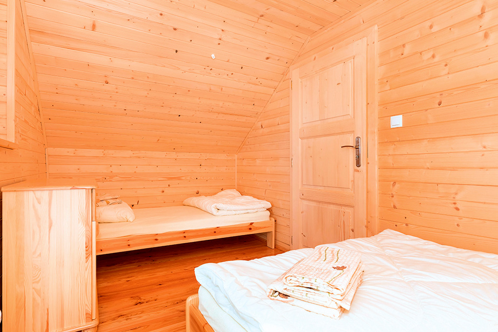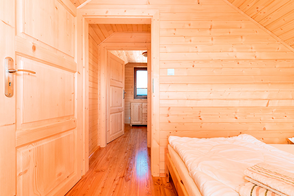 PL 43.9 Ferienhaus 2-7 Pers.: Schönes 3-Zimmerhaus mit 58 qm Wohnfläche über 2 Etagen. Parterre: Wohn-/Essraum mit rustikaler Holzbalkendecke, Kaminofen, Eckcouch (Ausziehcouch 2 Pers.), Sat-TV mit dt Programmen, Internet (W-Lan), Esstisch, moderner Küchenzeile (4 E-Pl. Ceranfeld, Mikrowelle, Tiefkühlschrank 33 l, Spülmaschine). Bad: Du, Wb, WC, Waschmaschine. Vom Wohnraum Holztreppe ins holzvertäfelte Dachgeschoss: 3-Bettzimmer mit franz. Bett, Einzelbett, Balkon. 2-Bettzimmer. Überdachte Terrasse mit Sitzmöbeln, Grill.