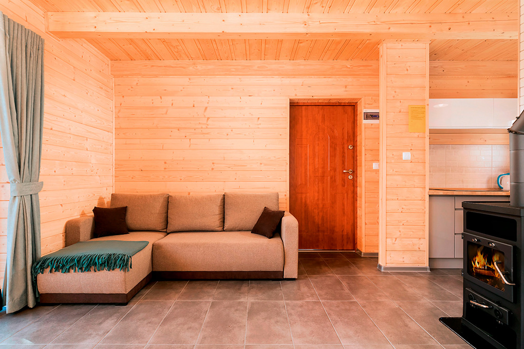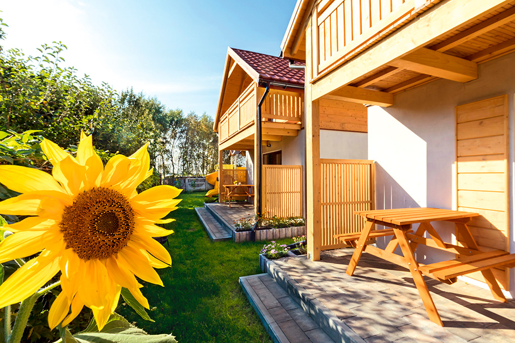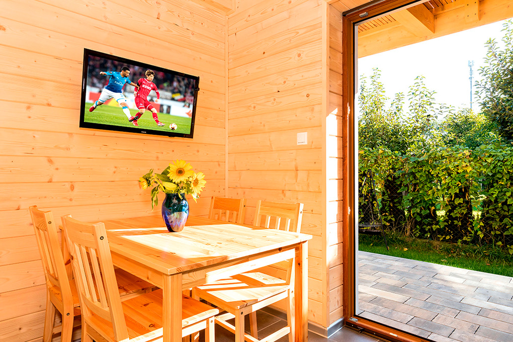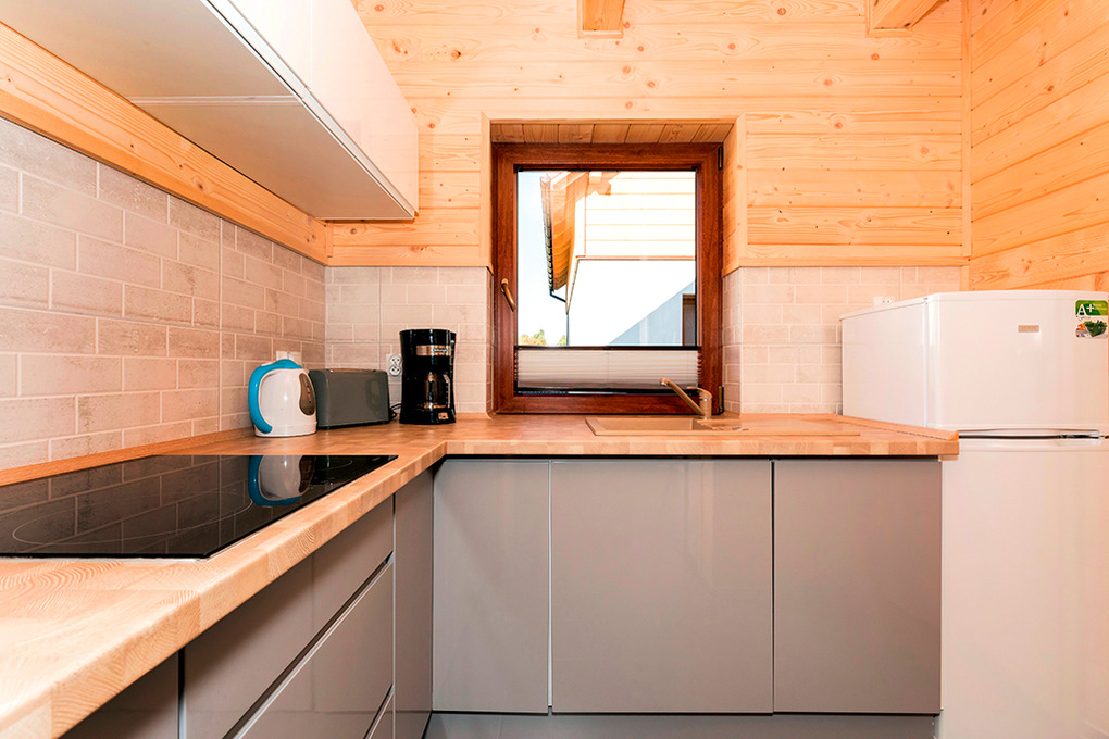 Haus: Kleine Ferienhausanlage mit vier komfortablen Ferienhäusern mit Kaminofen, 2017 neu erbaut auf einem gepflegten Grundstück (1.500 qm). Gemütliche Ferienhäuser mit moderner Einrichtung. Heizung teils über Kaminofen (im Erdgeschoß) und E-Radiatoren auf Wunsch (1.Etage). Warmwasser über E-Boiler (60 l). Klimaanlage mit Heizfunktion. Überdachte Terrasse mit Sitzmöbeln, Grill. 2 Parkplätze/Ferienhaus auf dem umzäunten Grundstück im Preis inklusiv. In der Anlage: Kinderspielplatz mit Trampolin, Rutsche, Basketballkorb, Volleyballnetz. Fahrradverleih (nach Verfügbarkeit, gegen Gebühr).