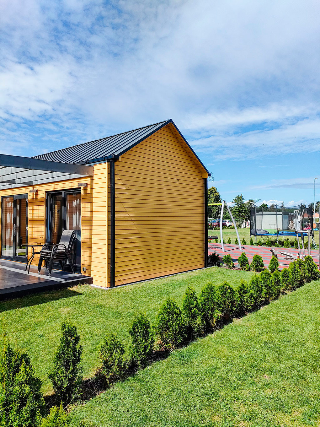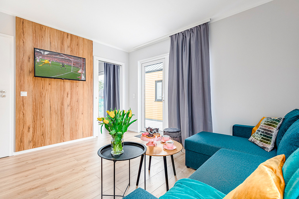 Gemütliche Ferienhäuser mit hochwertiger Einrichtung. Klimaanlage mit Heizfunktion und E-Heizung im Wohnzimmer, Warmwasser über E- Boiler (80 l). Große Terrasse mit Sitzmöbeln. 1 Parkplatz pro Ferienhaus. Internet über WLAN. Grills zur gemeinsamen Nutzung.