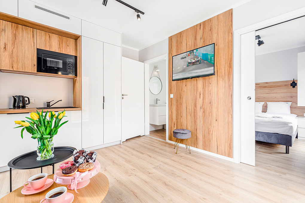 Ort: Dziwnow. Gute Lage, 550 m vom Weststrand von Dziwnow entfernt. Klappbrücke über den Fluß Dziwna mit Angelstellen 600 m. Ortsmitte mit Geschäften und Cafés 1,4 km. Restaurants 700 m. Supermarkt 350 m. Anlegestelle mit Ausflugsschiffen am Fluß Dziwna 2,5 km. Yachthafen mit Cafés 1,1 km. Miniatur- und Eisenbahnpark 650 m. Nationalpark Wollin 10 km.