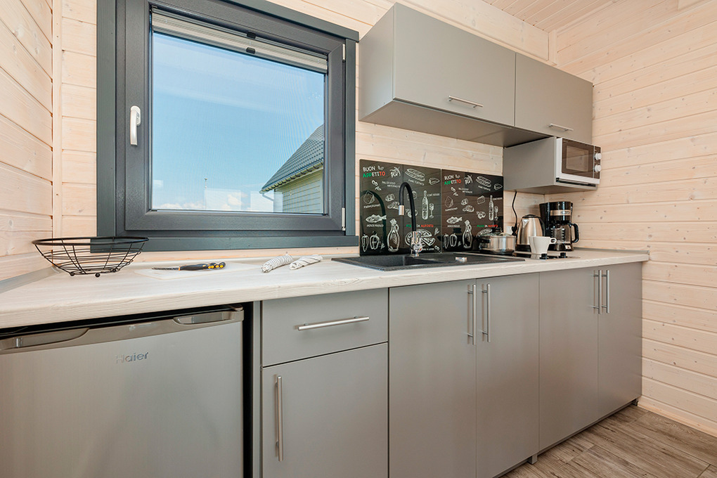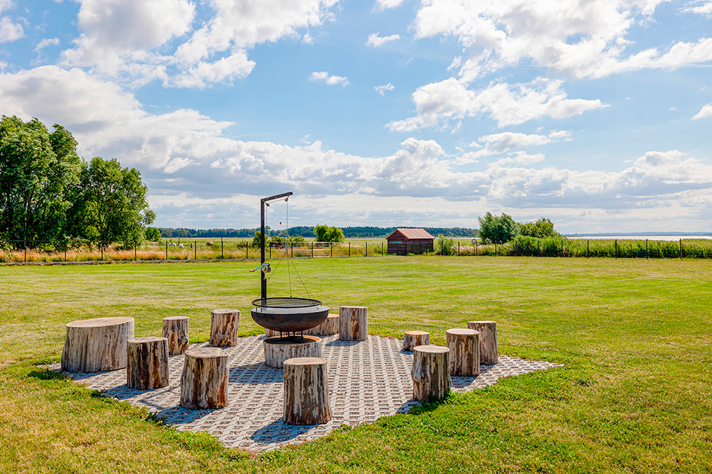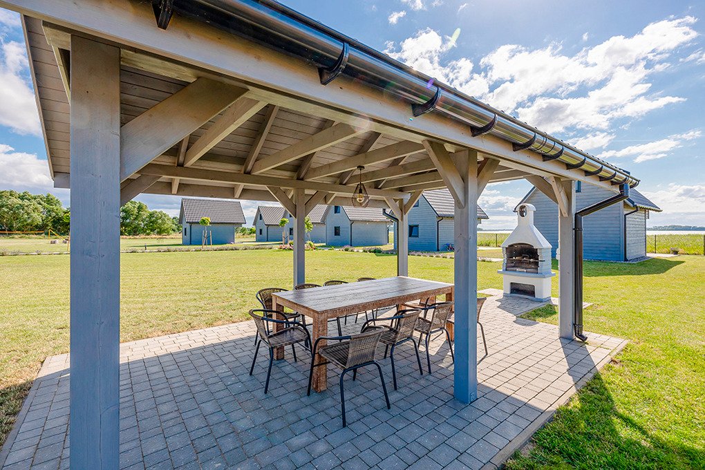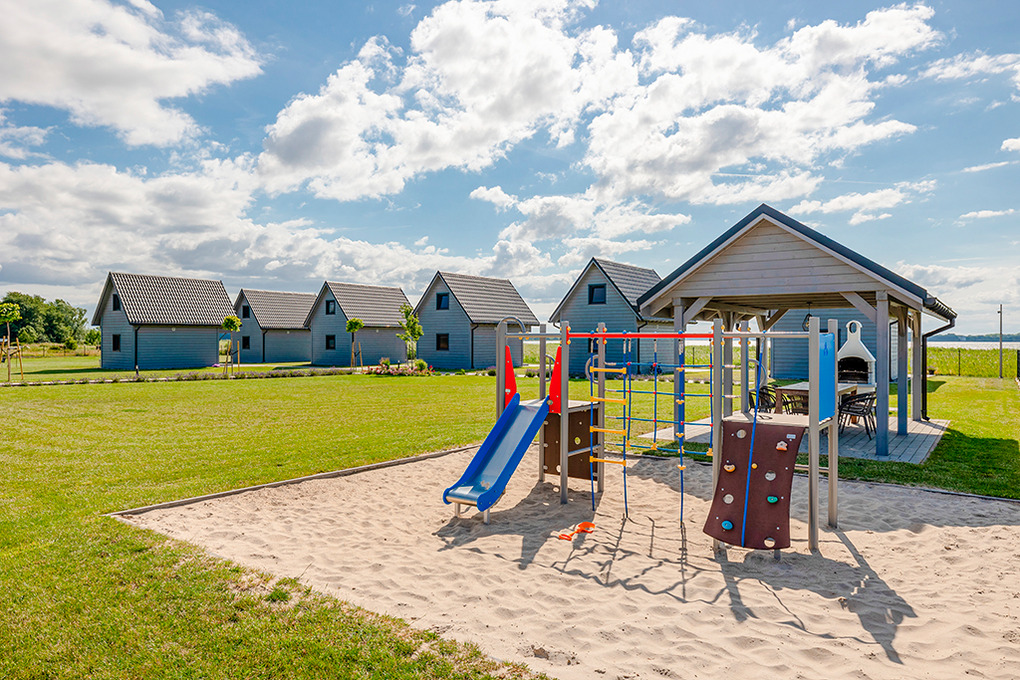 Haus: Sehr gepflegte Ferienhausanlage mit sechs Ferienhäusern auf einem 7000 qm großen Rasengrundstück, 2020 neu erbaut. In der Anlage: Rezeption. Kinderspielplatz mit großem Sandkasten, Klettergerüst, Rutsche. Lagerfeuerstelle. Pavillon mit überdachten Sitzmöglichkeiten, gemauertem Grill zur gemeinschaftlichen Nutzung. Sauna und Badefass (Gebühr).