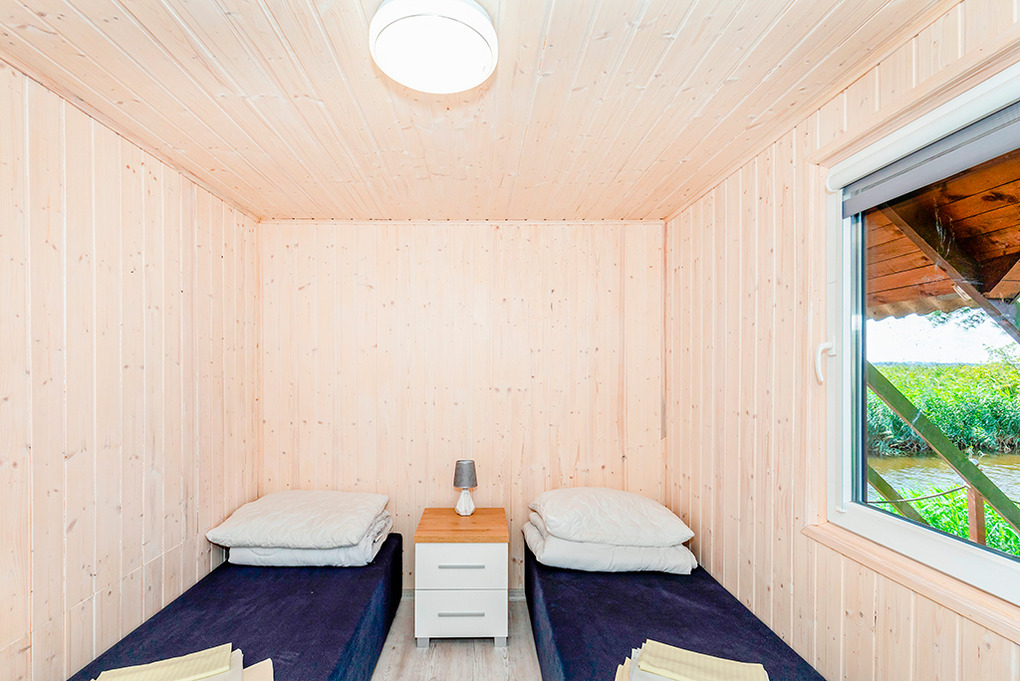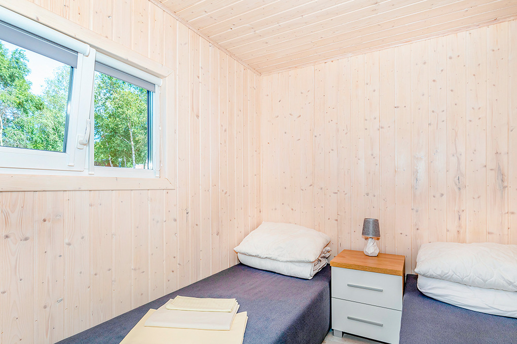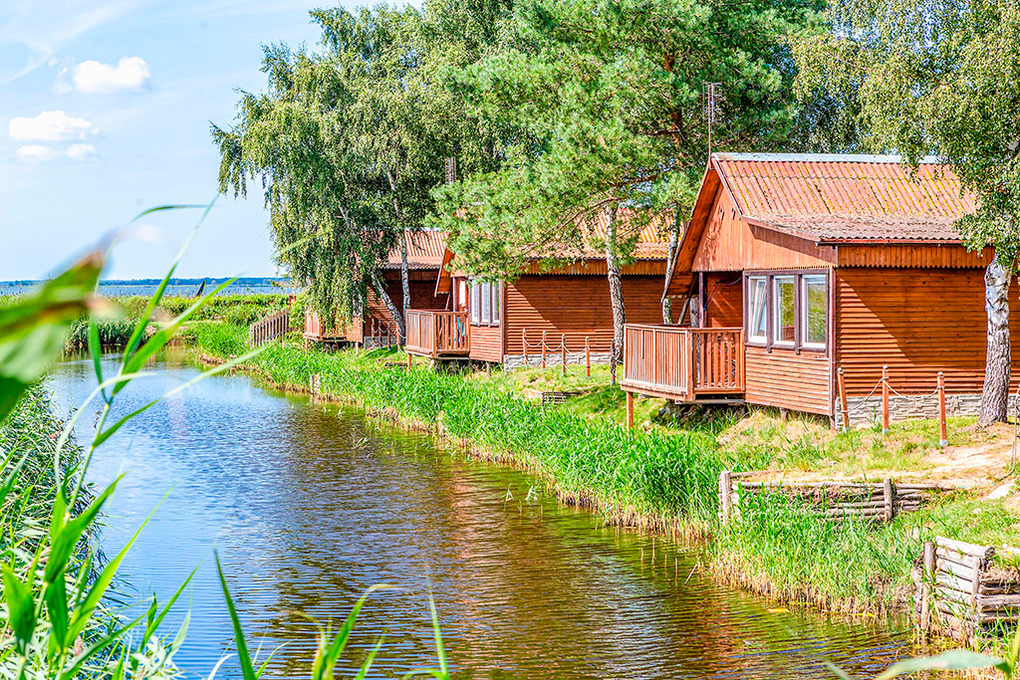 Gemütliche Ferienhäuser in idyllischer Lage am See. Heizung über E-Radiatoren auf Wunsch (nur PL 43.15), Warmwasser über E-Boiler (50 l). Terrasse mit Sitzmöbeln, Wasserblick. 1 Pkw-Stellplatz pro Haus auf dem umzäunten Grundstück (Gebühr).