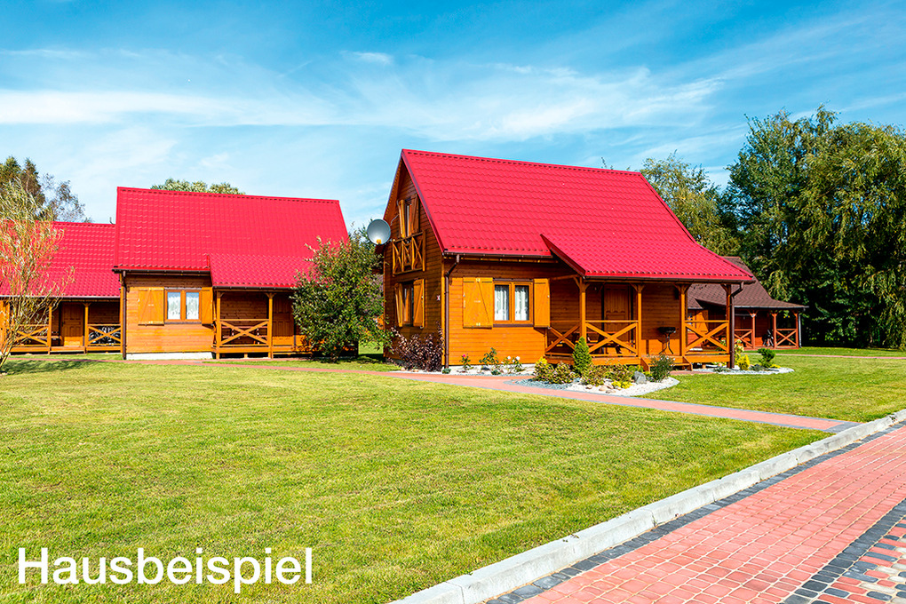Haus: Schöne Ferienhausanlage mit 14 Ferienhäusern. Gemütliche Holzhäuser mit freundlicher Einrichtung. Rustikal gemütlicher Flair durch Holzbalkendecken. Heizung mit E-Radiatoren, Warmwasser über Durchlauferhitzer. Terrasse mit Sitzmöbeln, Grill. In der Anlage: Kleiner Kinderspielplatz mit Sandkasten, Rutsche, Schaukel, Volleyballplatz, Lagerfeuerstelle zur gemeinsamen Nutzung. Parkplatz auf umzäuntem Grundstück.
