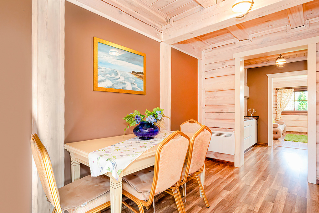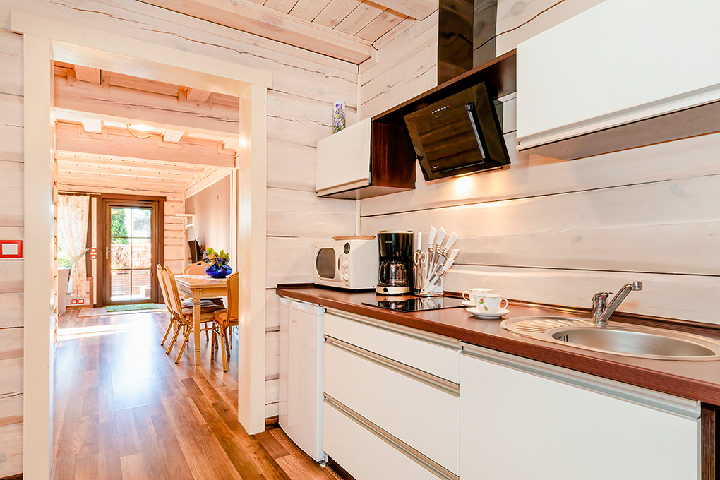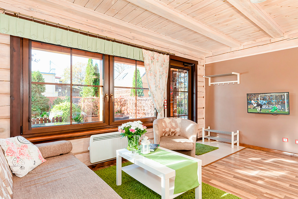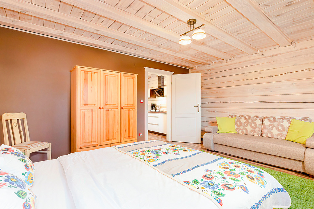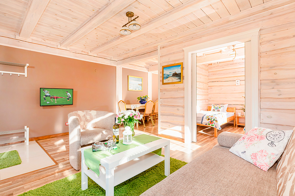 Gemütliche Ferienhäuser und Ferienwohnungen mit moderner, freundlicher Einrichtung. Kostenloses Internet (WLan). Zentralheizung, Warmwasser über E-Boiler (100 l). Halbüberdachte Terrasse oder Balkon mit Sitzmöbeln, Grill. Haustiere erlaubt gegen Gebühr (nicht in PL 50.7). 1 Parkplatz/ Objekt auf dem umzäunten Grundstück (Gebühr).