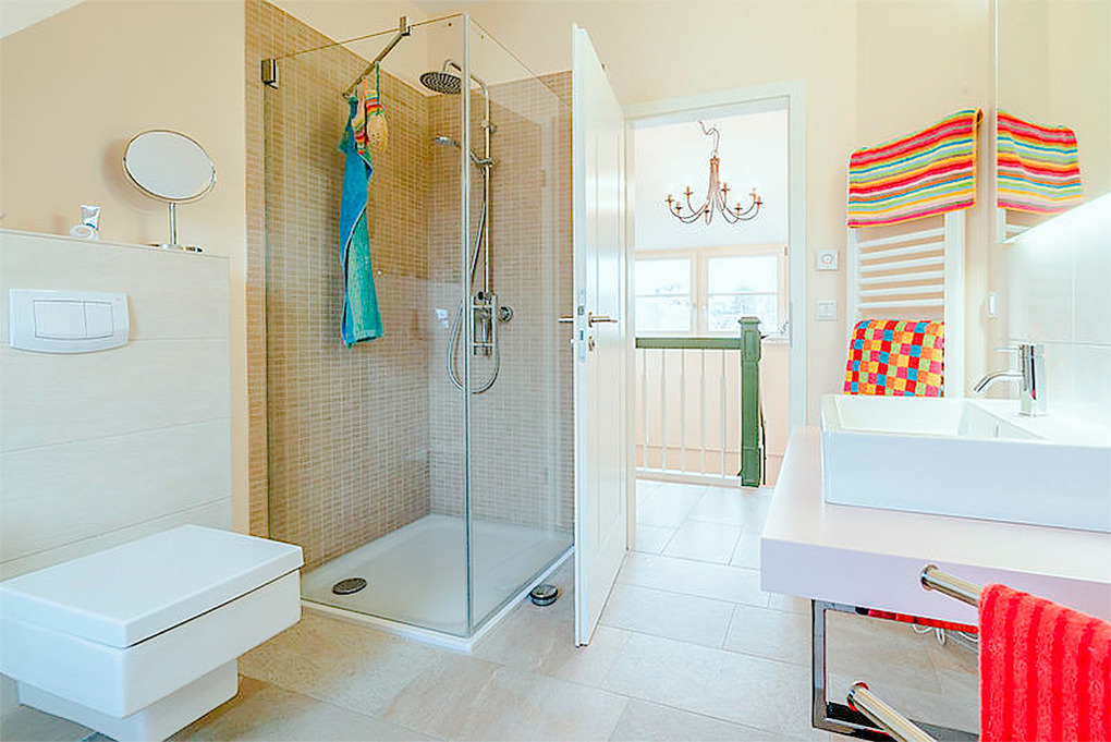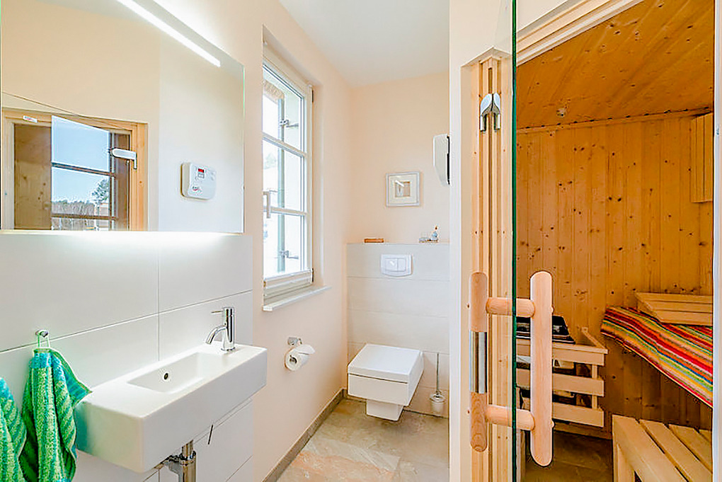 D 120.32 Ferienhaus 2-5 Pers.: Exklusives 3-Zimmerhaus mit ca. 95 qm Wohnfläche über 2 Etagen. Parterre: Gemütlicher Wohn-/Essraum mit Bioethanol Ofen, Couchgarnitur, Sat-TV, DVD, Radio-CD Esstisch, hochwertig ausgestatteter Einbauküche (Backofen, Mikrowelle, Spülmaschine, Waschmaschine). Bad: Sauna, Dusche, Wb, WC. 1. Etage: 3-Bettzimmer mit Doppelbett, Einzelbett. Doppelzimmer mit franz. Bett (1,40 x 2,00 m). Einzelzimmer. Bad: Du, Bw, Wb, WC.