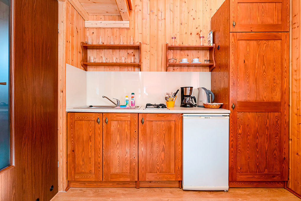Rustikale Holzchalets mit gepflegter Einrichtung. Kostenloses Internet über WLan. Heizung mit E-Radiatoren (Bestellung, Gebühr), Klimaanlage mit Heizfunktion im EG (nur PL 50.25), Warmwasser über E-Boiler. Terrasse mit Sitzmöbeln, Grill. 1 Parkplatz/Ferienhaus (PL 50.24) bzw. 2 Parkplätze/Ferienhaus (PL 50.25) auf dem umzäunten Grundstück (Gebühr).