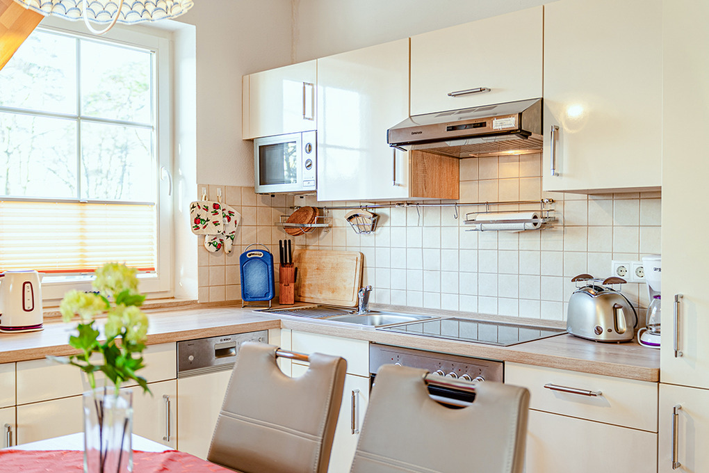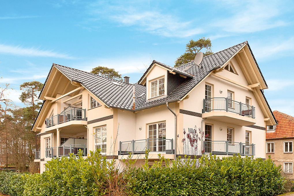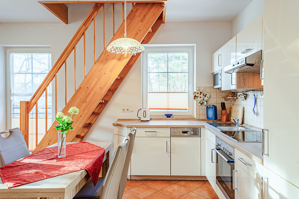 Haus: Modernes Apartmenthaus. Komfortable, geschmackvolle Ferienwohnungen, Sat-TV, überdachter Balkon (Sitzmöbel). Zentralheizung. Gartenhaus für Fahrräder. 1 Pkw-Stellplatz/Fewo.