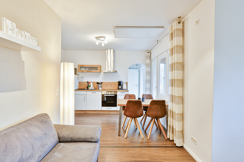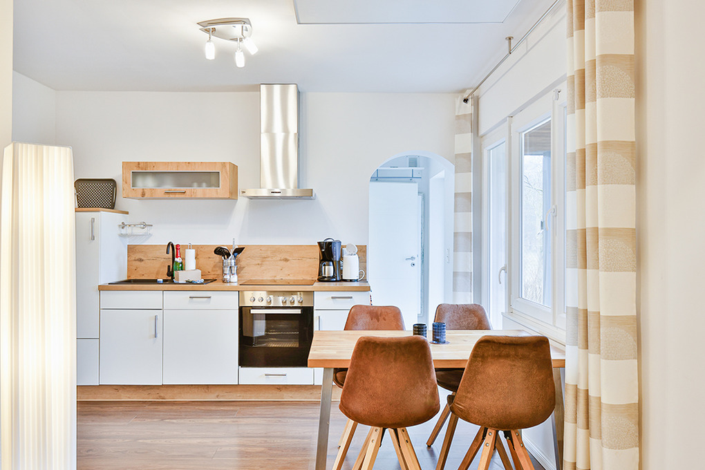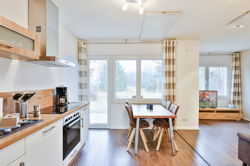 D 68.47 Ferienhaus 1-4 Pers.: 3-Zimmerhaus mit 60 qm Wohnfläche, Parterre. Wohn-/Essraum mit Kaminofen, Couchgarnitur, Smart-TV, Esstisch, gut ausgestattete Küchenzeile (Backofen, Spülmaschine). Doppelzimmer. 2-Bettzimmer. Bad/WC. Überdachte Terrasse mit Sitzmöbeln mit herrlichem, unverbautem Blick in die Natur