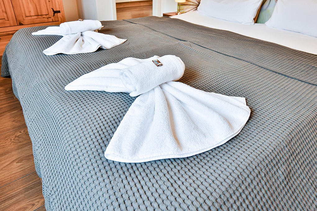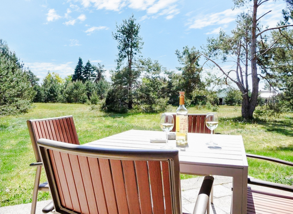 Haus: Fünf schöne, neu renovierte Bungalows auf einem weitläufigem Natur-Gartengrundstück. Moderne, geschmackvolle Einrichtung mit Kaminofen. Kostenloser Internetzugang über W-Lan. E-Heizung. Umweltfreundliche Stromversorgung über Solarpanelen. Überdachte Terrasse mit Sitzmöbeln, Grill, Sonnenliegen.